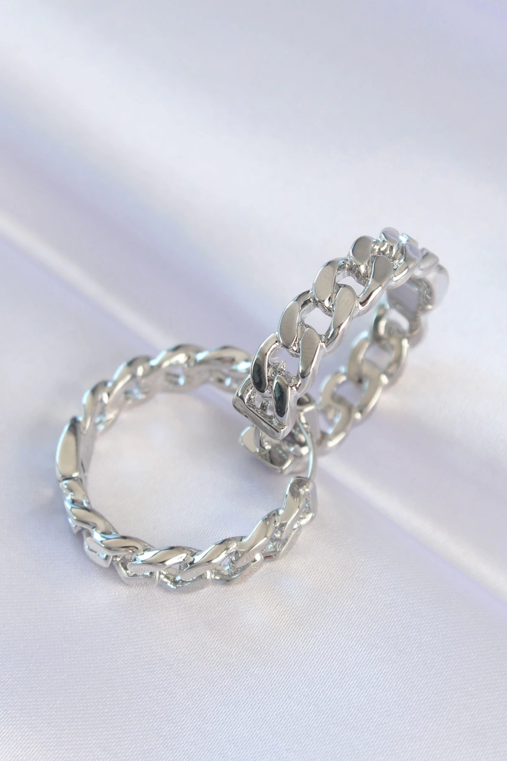 Pirinç Gümüş Renk Zincir Model Halka Küpe - TJ-BKP8971