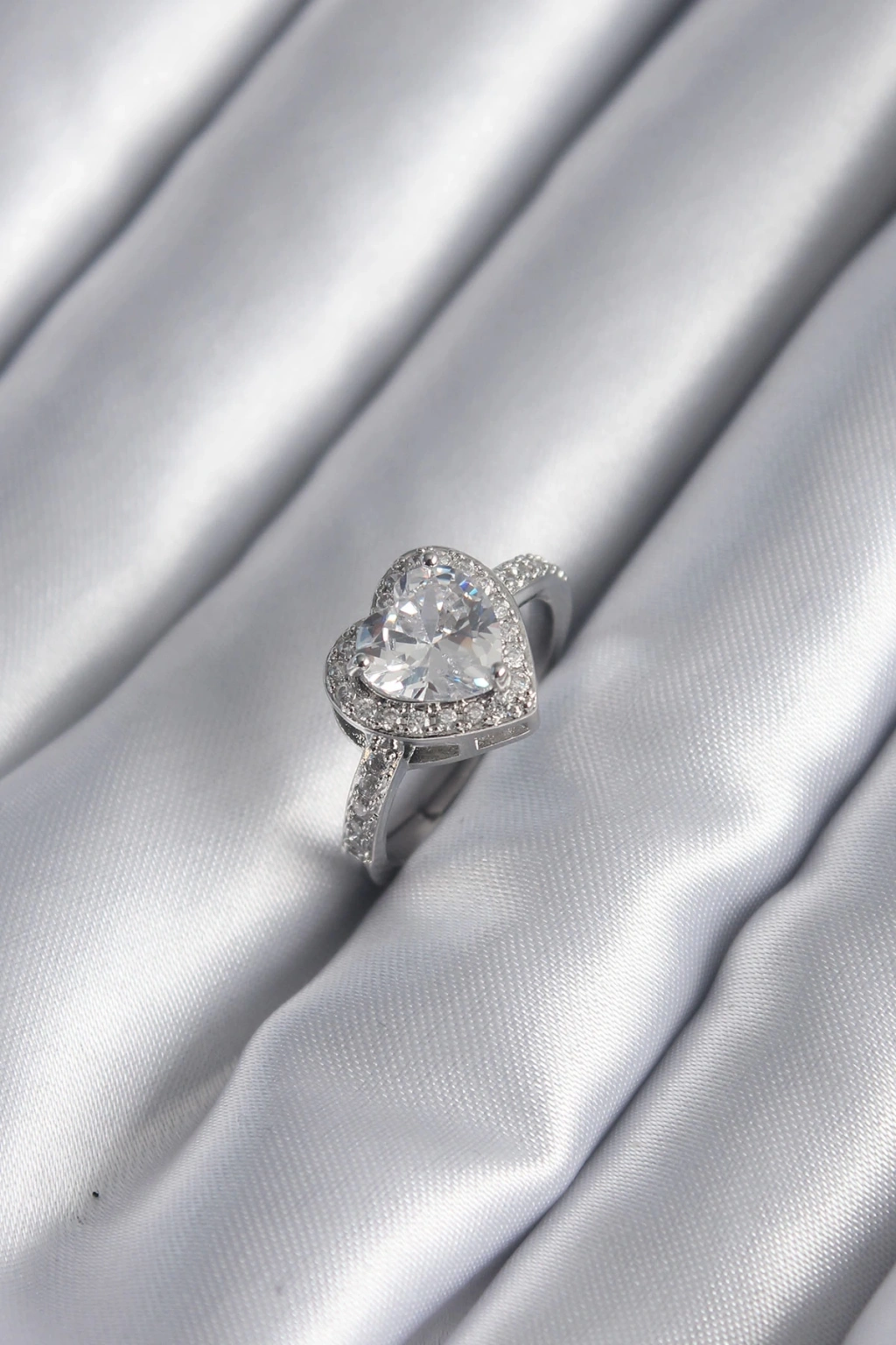 Pirinç Gümüş Renk Zirkon Taş Kalp Charm Model Kadın Yüzük - TJ-BYK2952