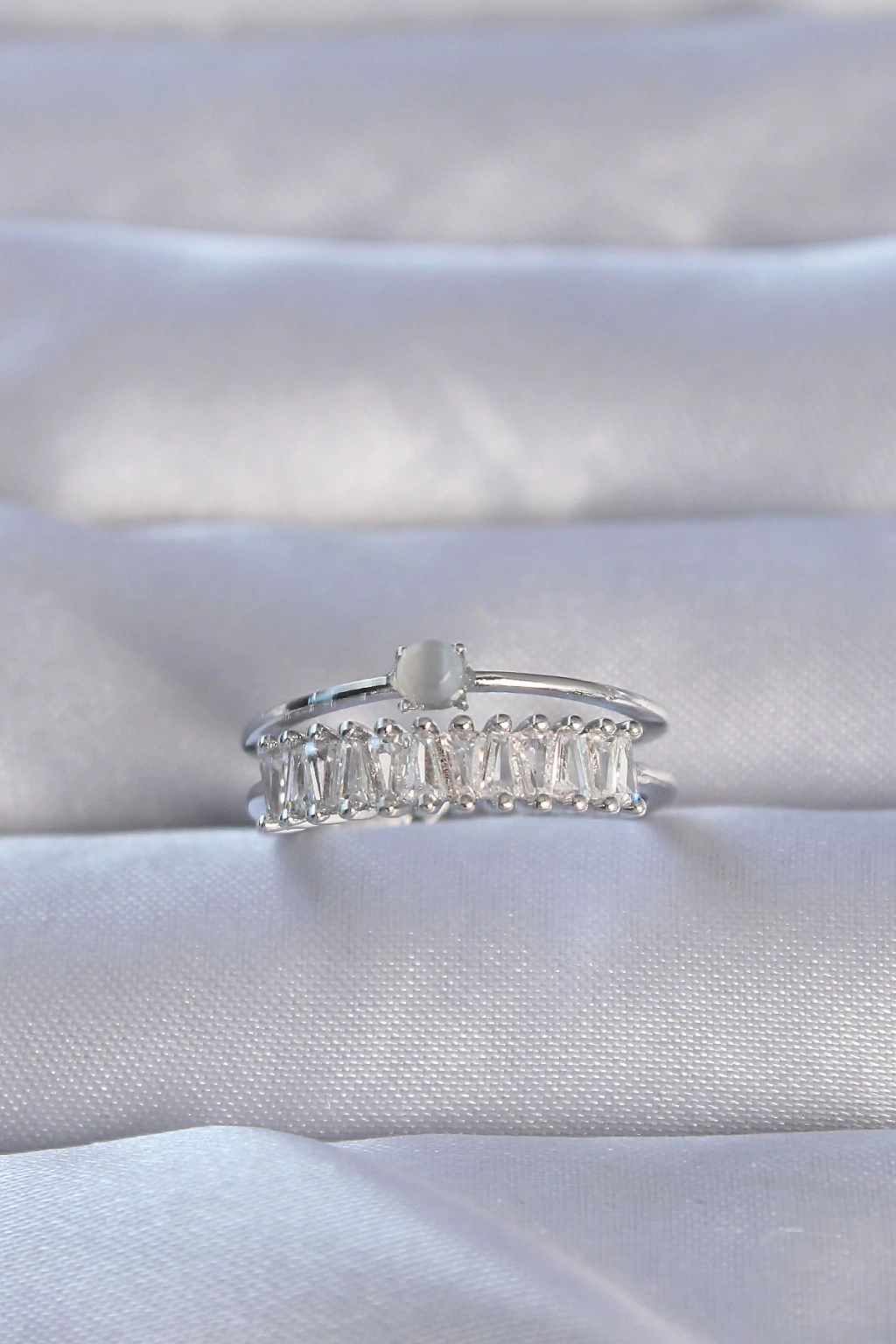 Pirinç Gümüş Renk Zirkon Taşlı Baget Su Yolu Model Ayarlanabilir Yüzük - TJ-BYK3228