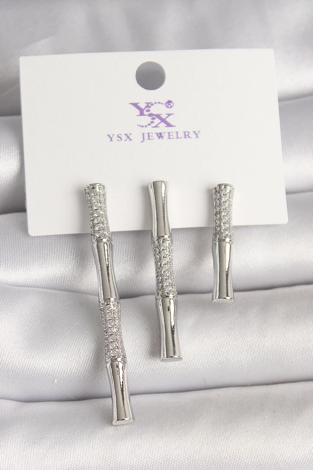 Pirinç Gümüş Renk Zirkon Taşlı Bambu Model 3'Lü Kadın Kombin Küpe - TJ-BKP10462