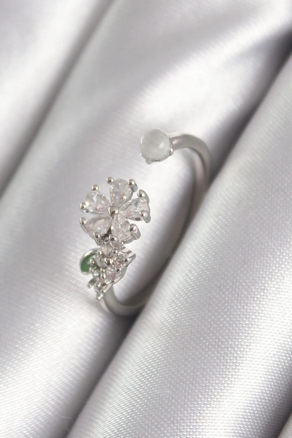 Pirinç Gümüş Renk Zirkon Taşlı Çiçek Model Kadın Yüzük - TJ-BYK3048