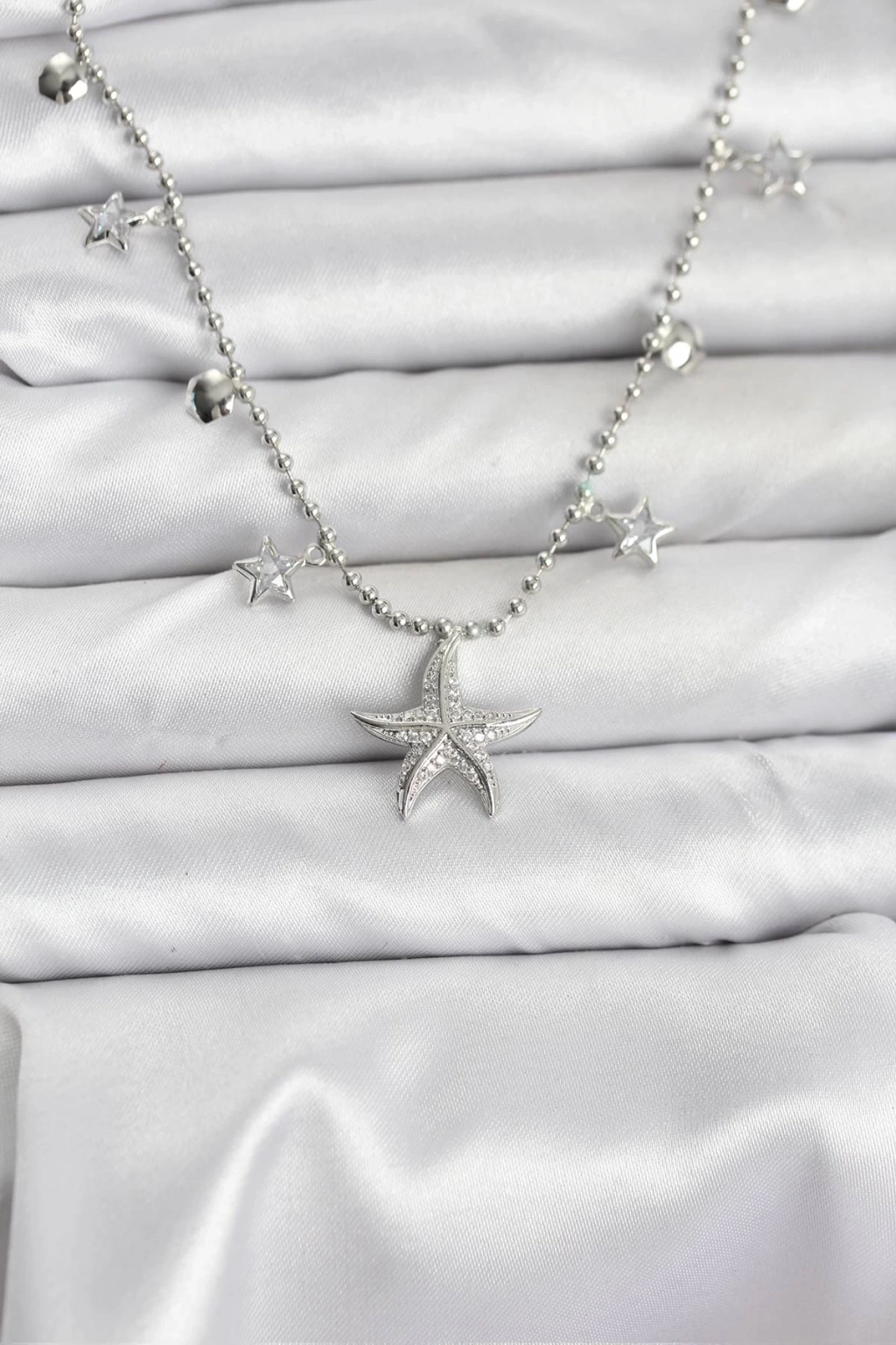Pirinç Gümüş Renk Zirkon Taşlı Deniz Yıldızı Model Kadın Kolye - TJ-BKO10654