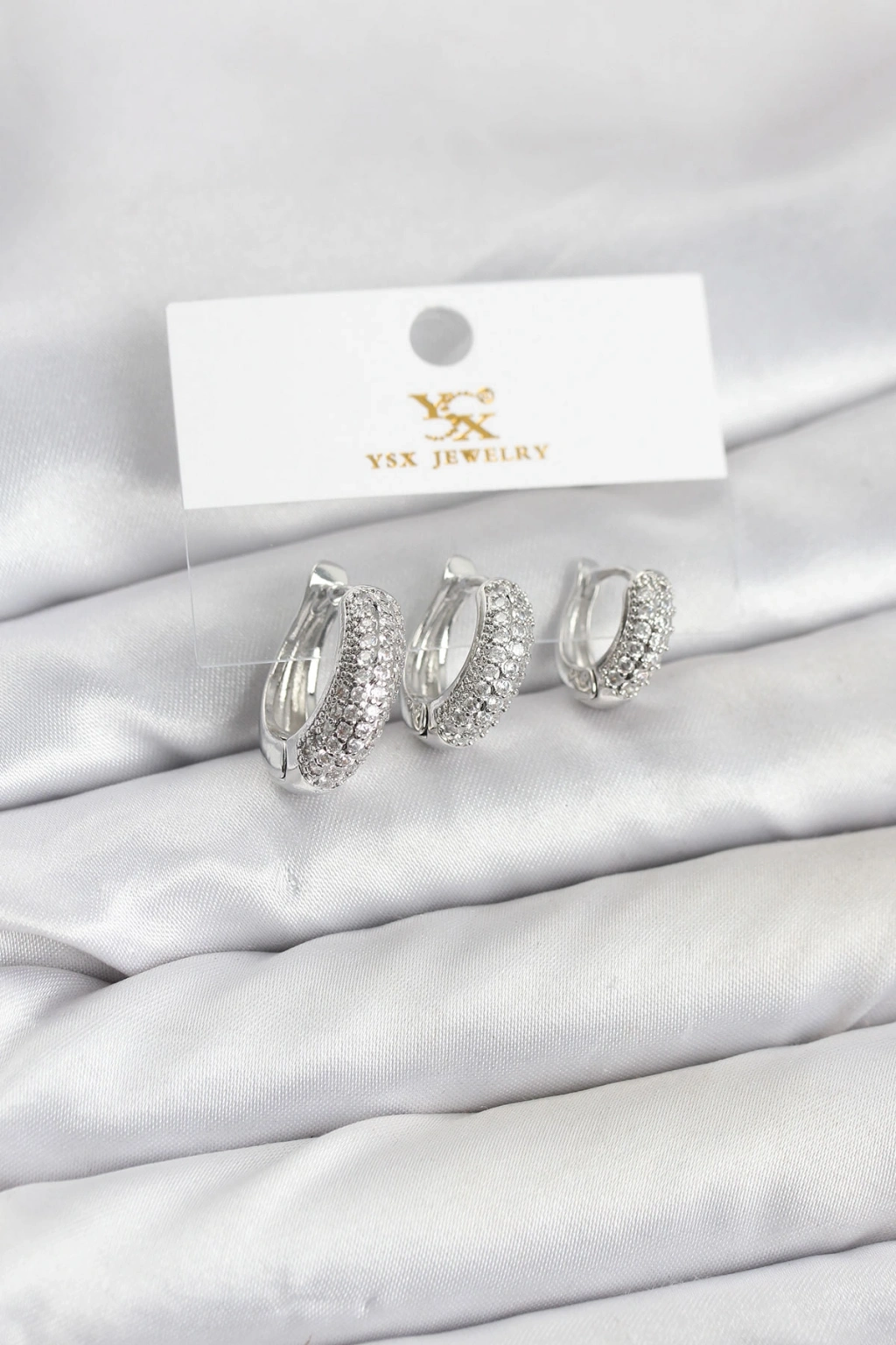 Pirinç Gümüş Renk Zirkon Taşlı Halka Model YSX Trio Küpe Seti - TJ-BKP11559