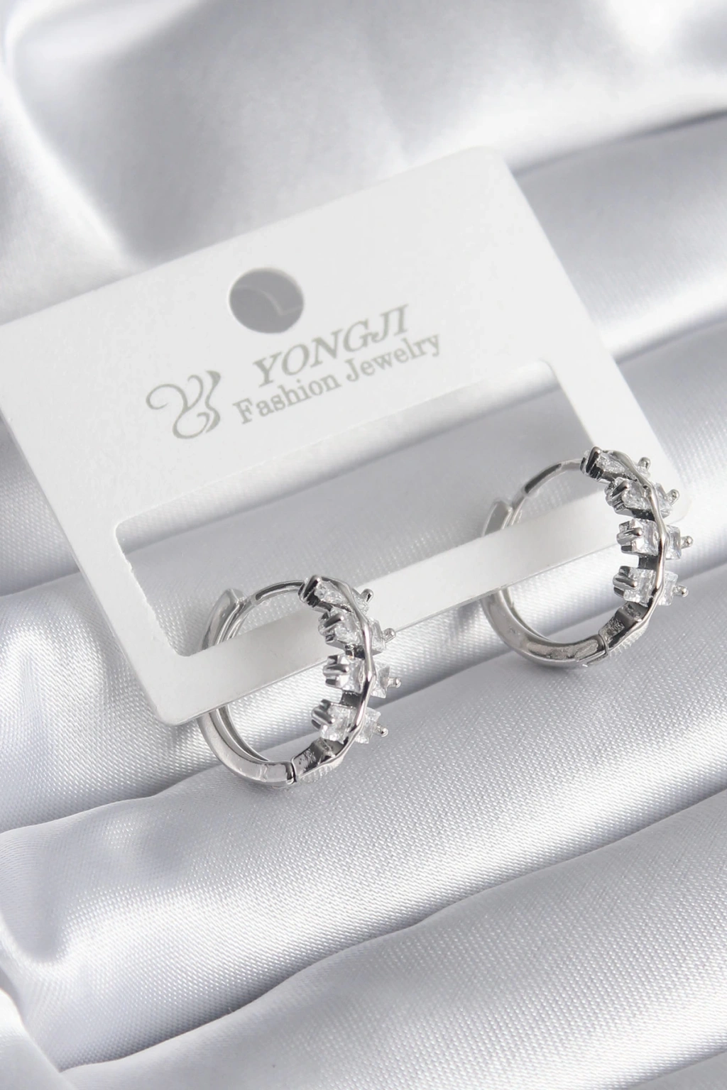 Pirinç Gümüş Renk Zirkon Taşlı Kadın Küpe - TJ-BKP8355