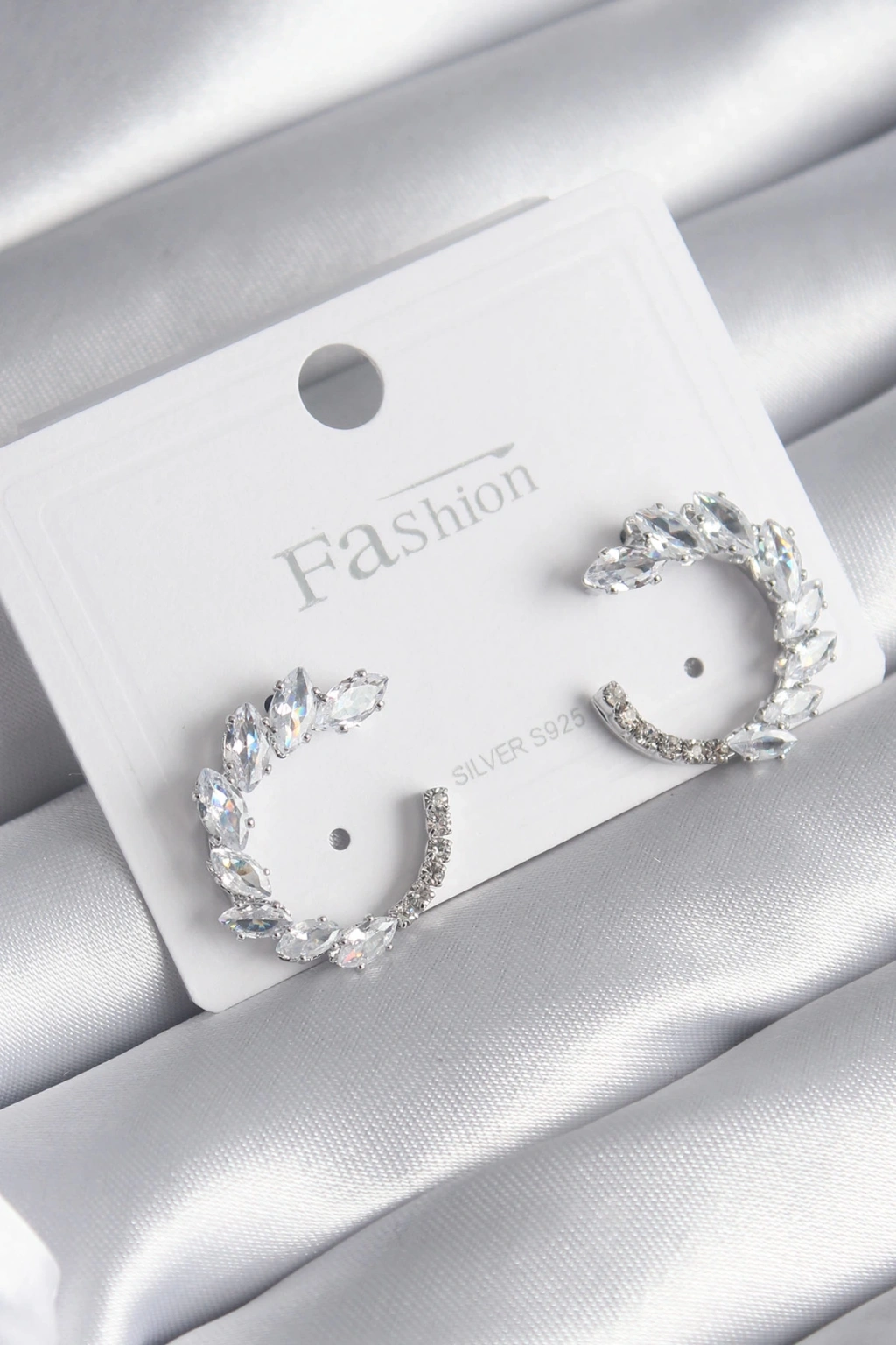Pirinç Gümüş Renk Zirkon Taşlı Kadın Küpe - TJ-BKP8510