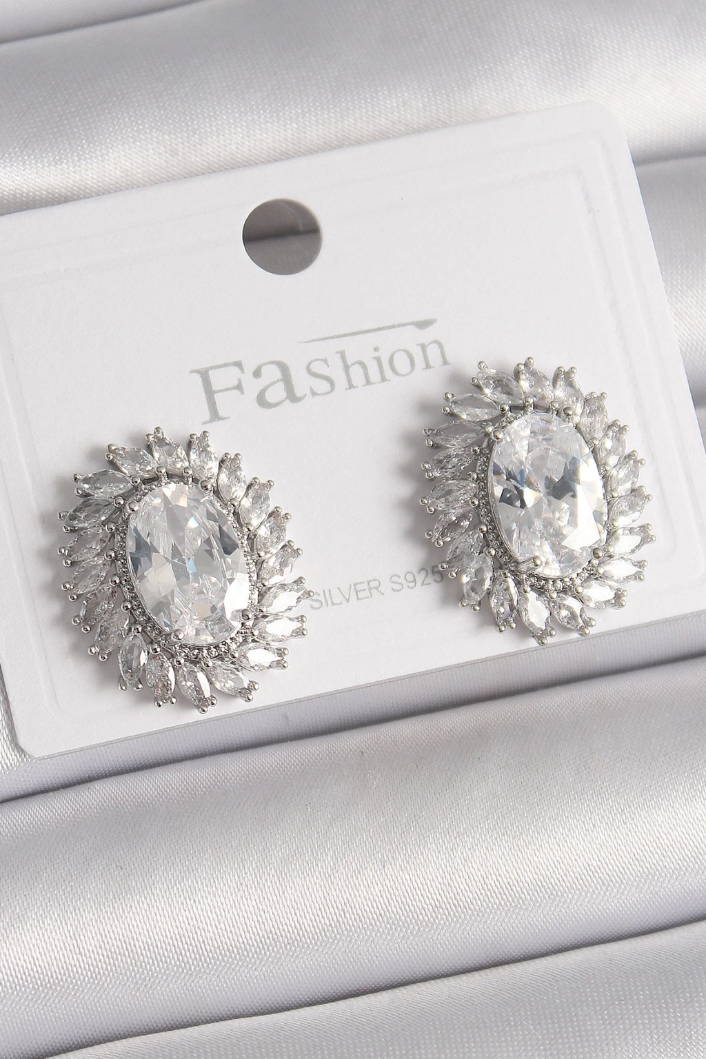 Pirinç Gümüş Renk Zirkon Taşlı Kadın Küpe - TJ-BKP9926