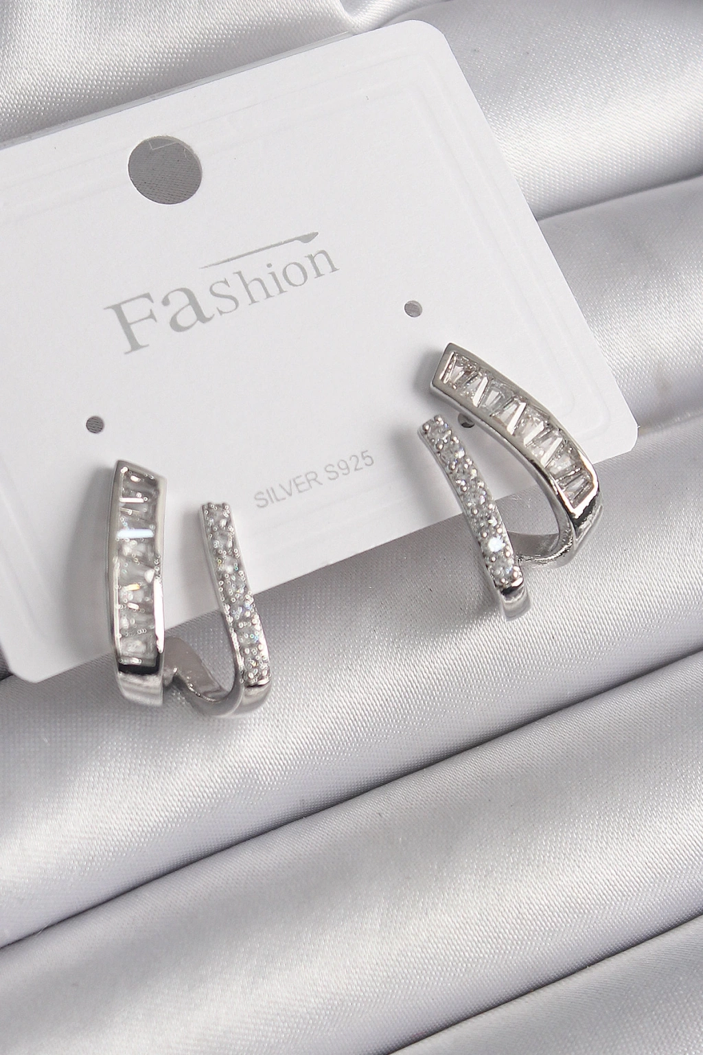 Pirinç Gümüş Renk Zirkon Taşlı Kadın Küpe - TJ-BKP9970