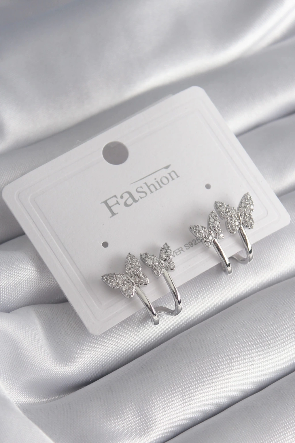 Pirinç Gümüş Renk Zirkon Taşlı Kelebek Model Kadın Küpe - TJ-BKP8423