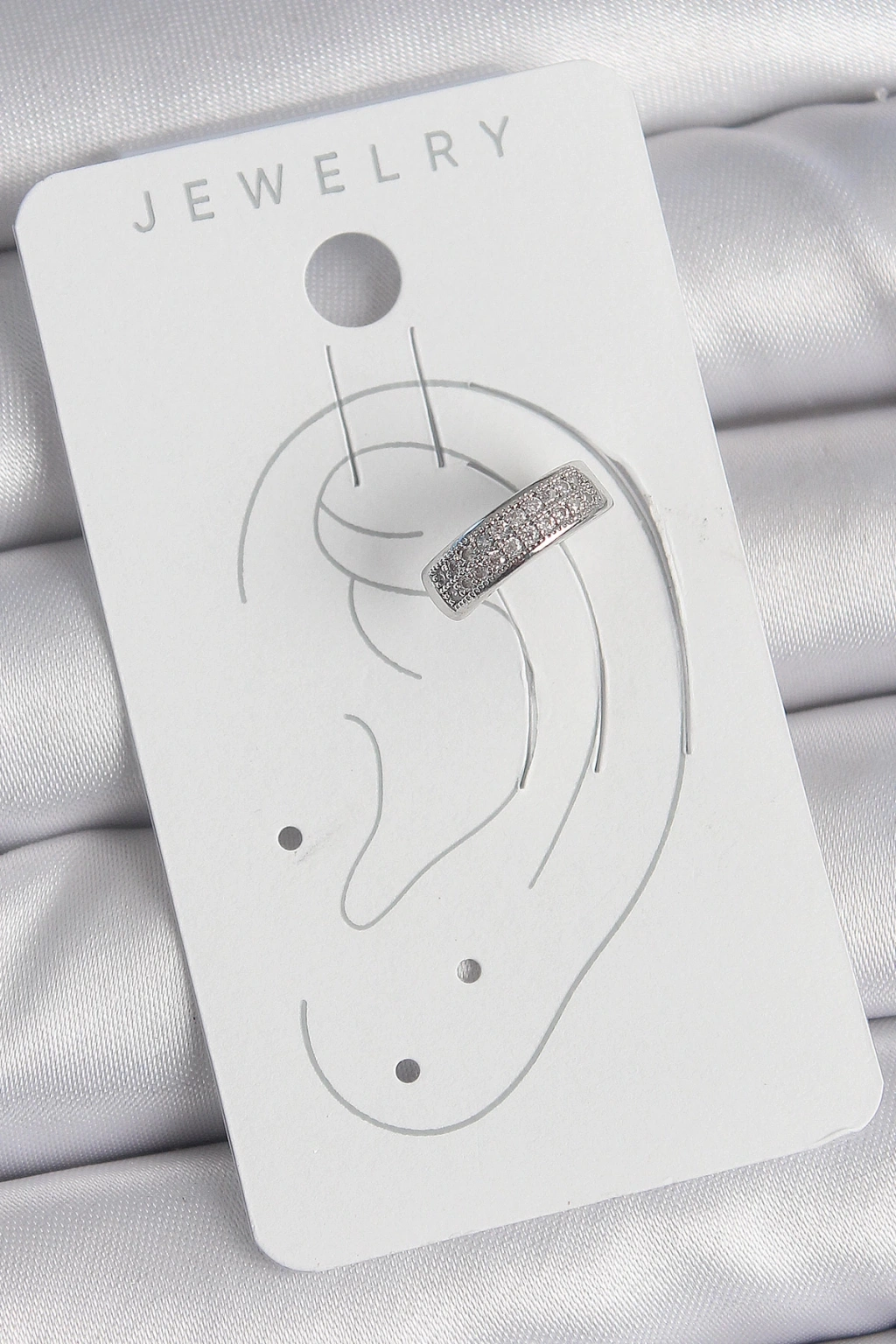Pirinç Gümüş Renk Zirkon Taşlı Kıkırdak Model Kadın Küpe - TJ-BKP10552