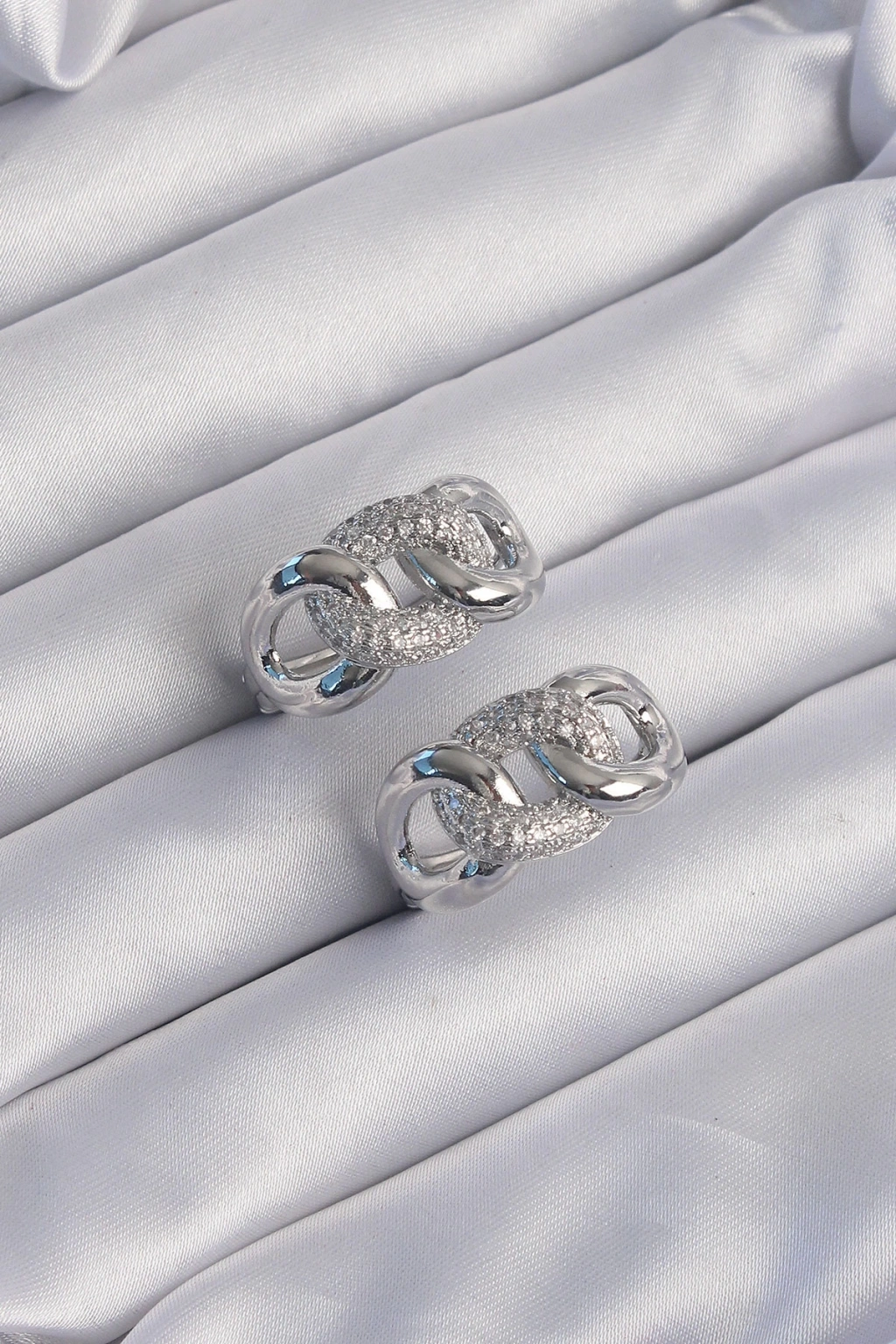 Pirinç Gümüş Renk Zirkon Taşlı Samanyolu Küpe - TJ-BKP9199