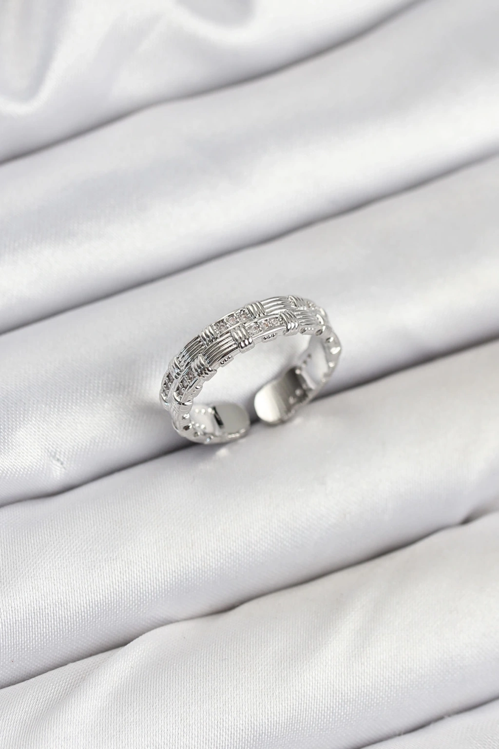 Pirinç Gümüş Renk Zirkon Taşlı Sırım Kadın Yüzük - TJ-BYK3847