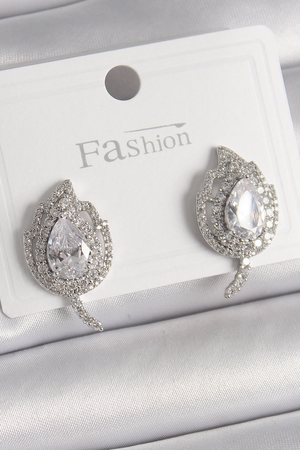 Pirinç Gümüş Renk Zirkon Taşlı Yaprak Model Kadın Küpe - TJ-BKP9946