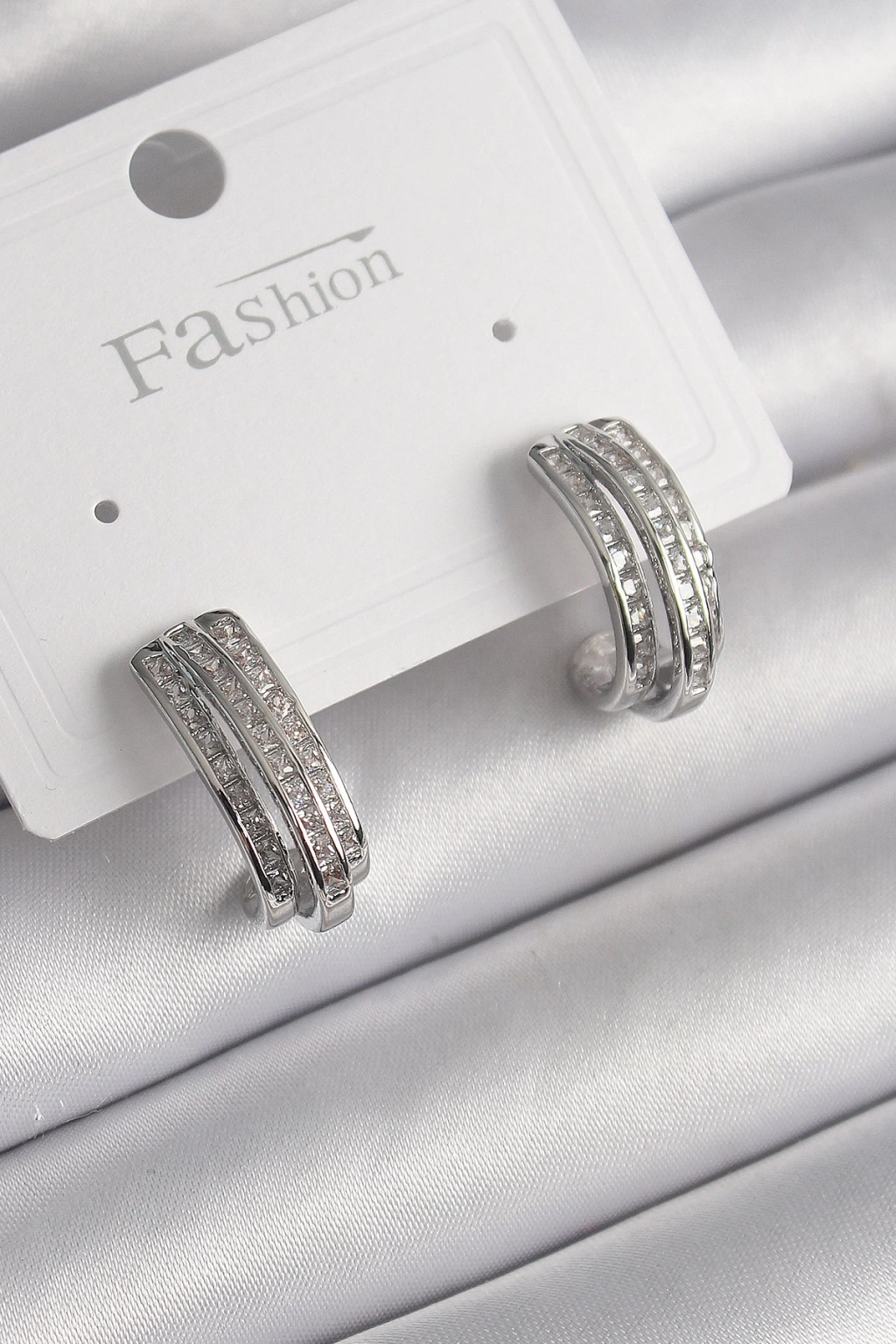 Pirinç Gümüş Renk Zirkon Taşlı Yarım Halka Model Kadın Küpe - TJ-BKP9978