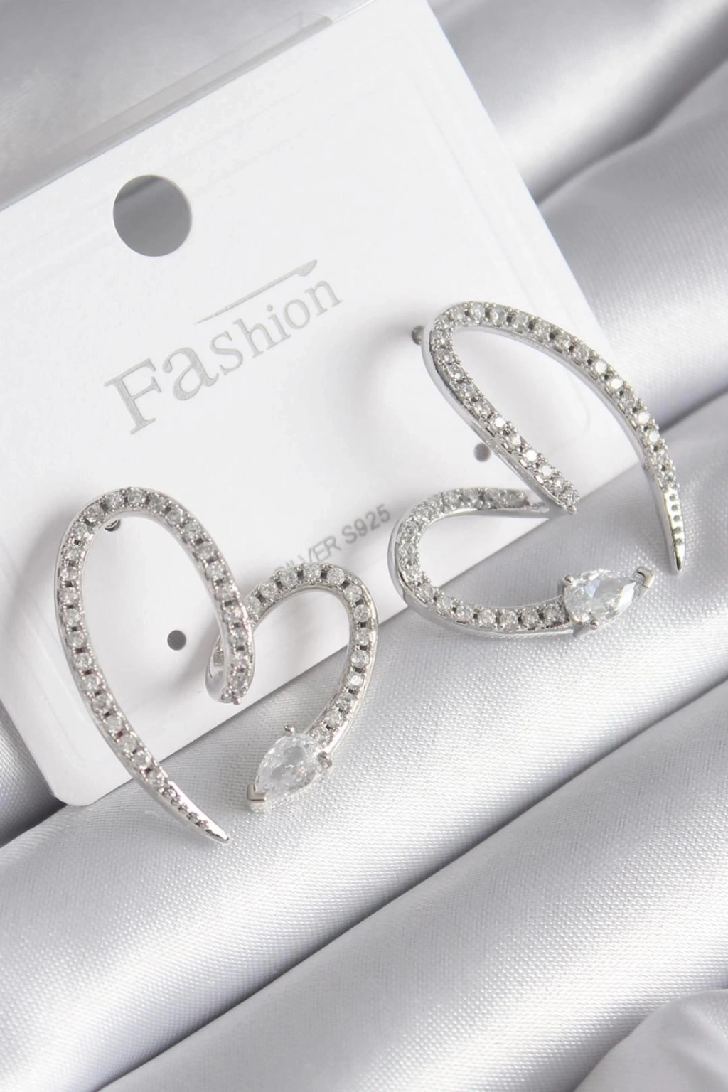Pirinç Gümüş Renk Zirkon Taşlı Yılan Kalp Model Kadın Küpe - TJ-BKP9742