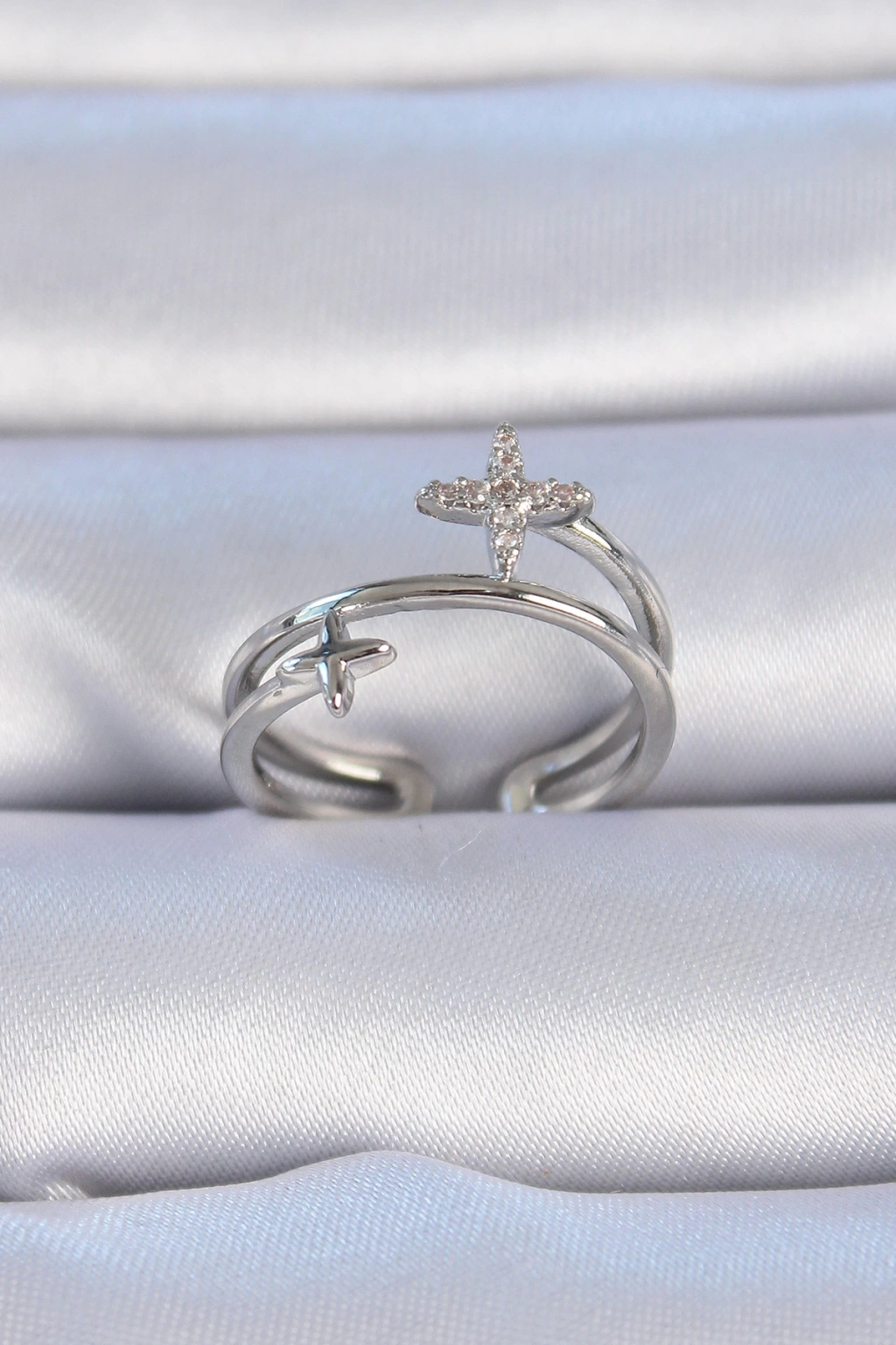 Pirinç Gümüş Renk Zirkon Taşlı Yıldız Model Kadın Yüzük - TJ-BYK3329