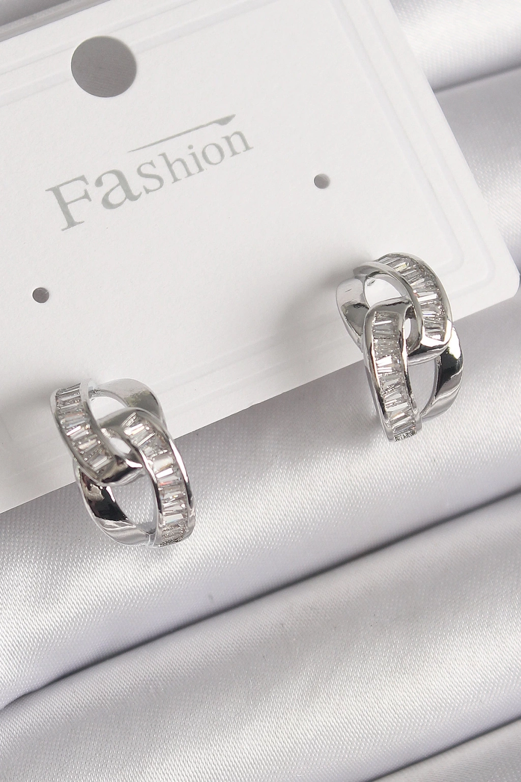 Pirinç Gümüş Renk Zirkon Taşlı Zincir Model Kadın Küpe - TJ-BKP9793