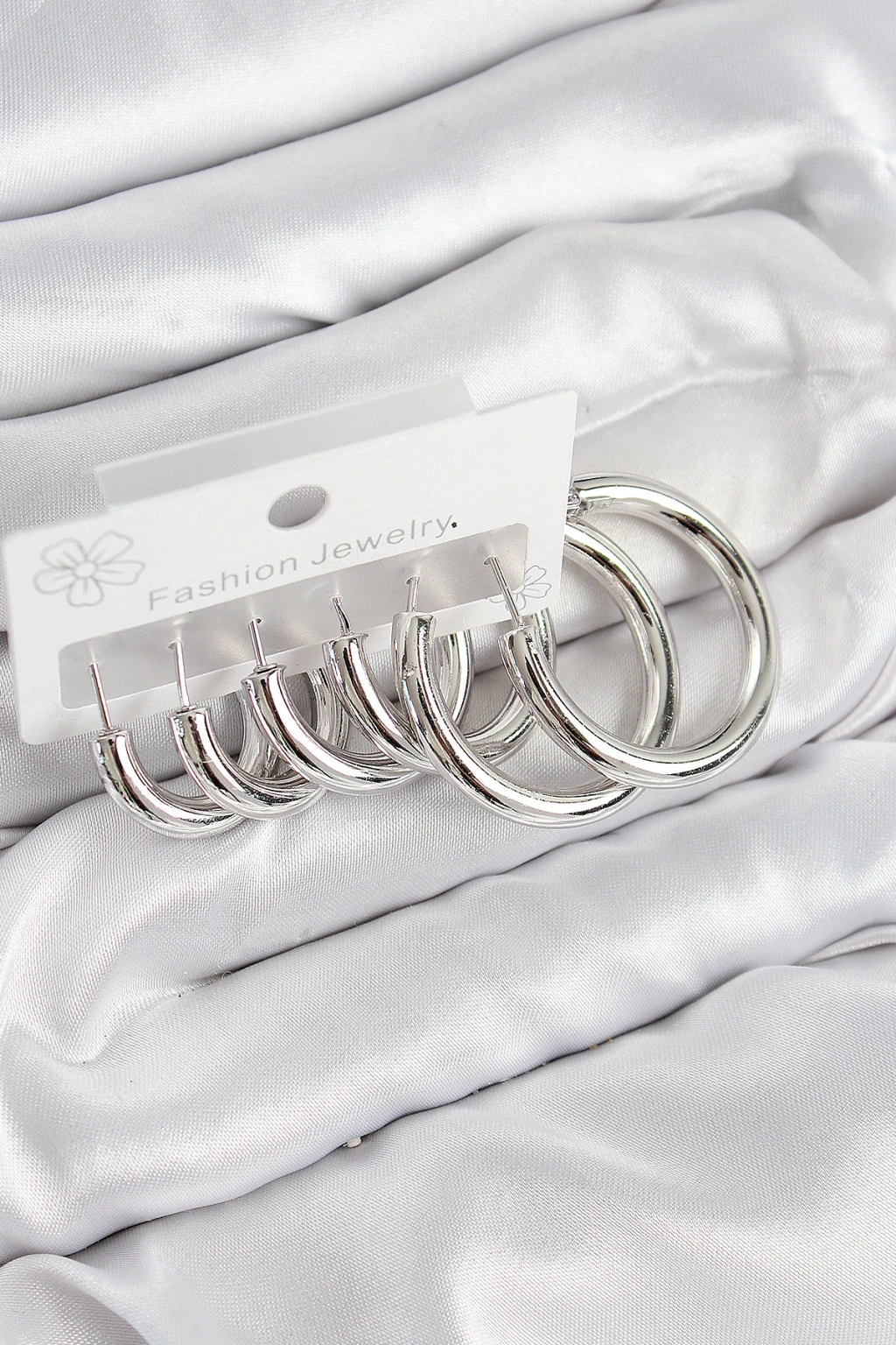 Pirinç Halka Model Gümüş Renk Kadın Set Küpe - TJ-BKP11056