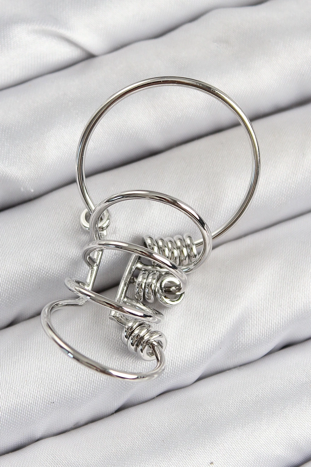 Pirinç Halkalı Model Gümüş Renk Kıkırdak Küpe - TJ-BKP11059