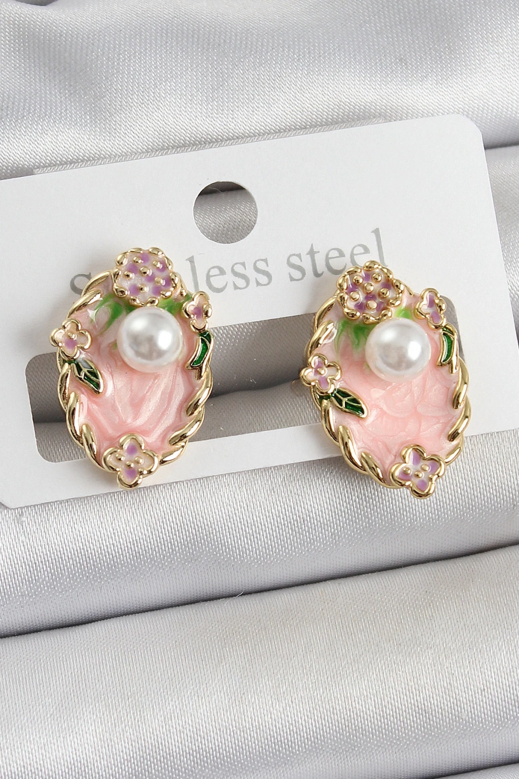 Pirinç Pembe Mineli İnci Detaylı Sanatsal Portre Model Gold Renk Kadın Küpe - TJ-BKP10690