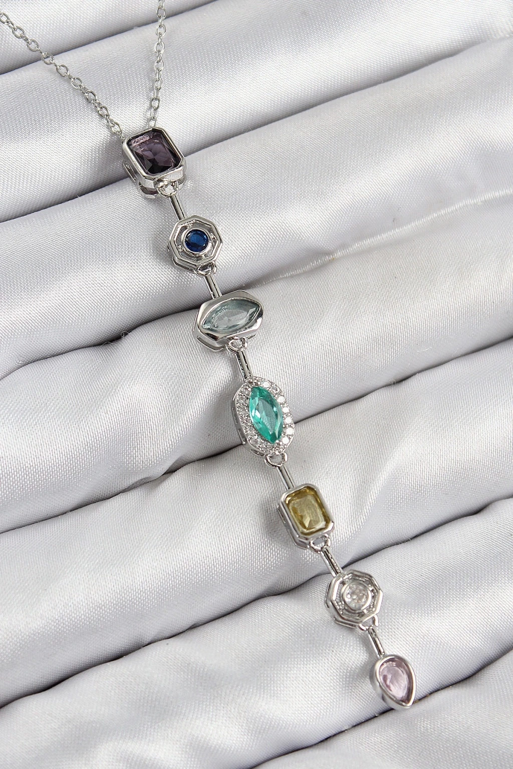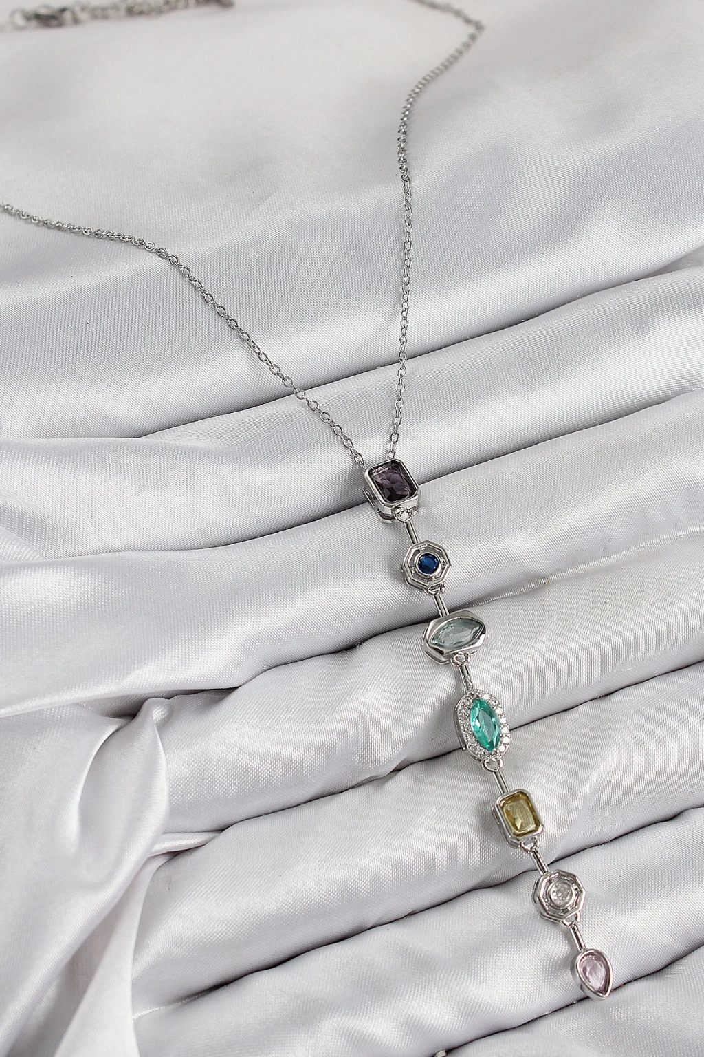 Pirinç Renkli Zirkon Taşlı Model Gümüş Renk Kadın Y Kolye - TJ-BKO10440
