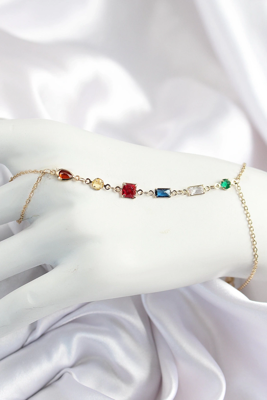 Pirinç Renkli Zirkon Taşlı Y Model Gold Renk Kadın Şahmeran - TJ-SN684