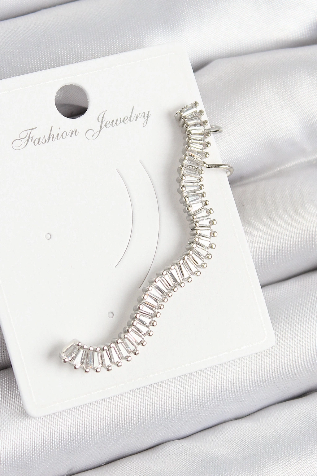 Pirinç Su Yolu Model Gümüş Renk Sağ Kıkırdak Küpe - TJ-BKP10986