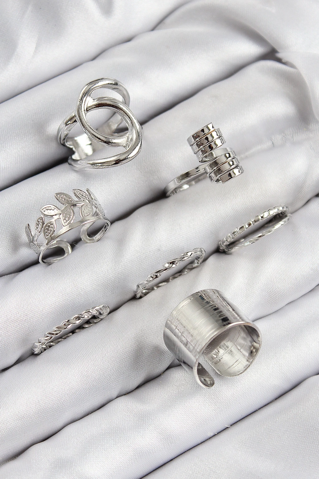 Pirinç Yaprak Model Gümüş Renk Kadın Yüzük Kombin Set - TJ-BYK3818