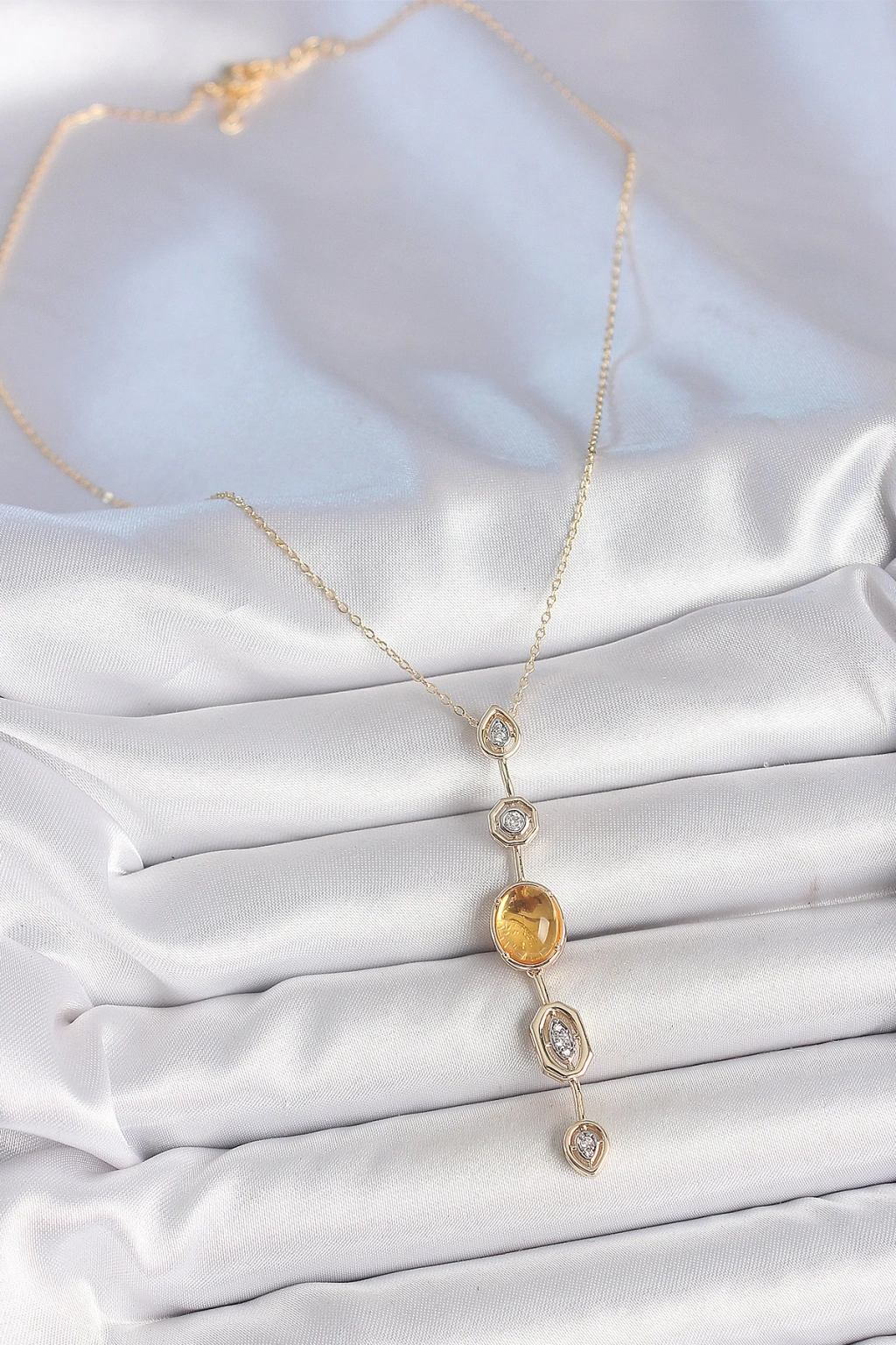 Pirinç Zincir Kehribar Sarı Gold Renk Zirkon Taşlı Y Kolye - TJ-BKO10230