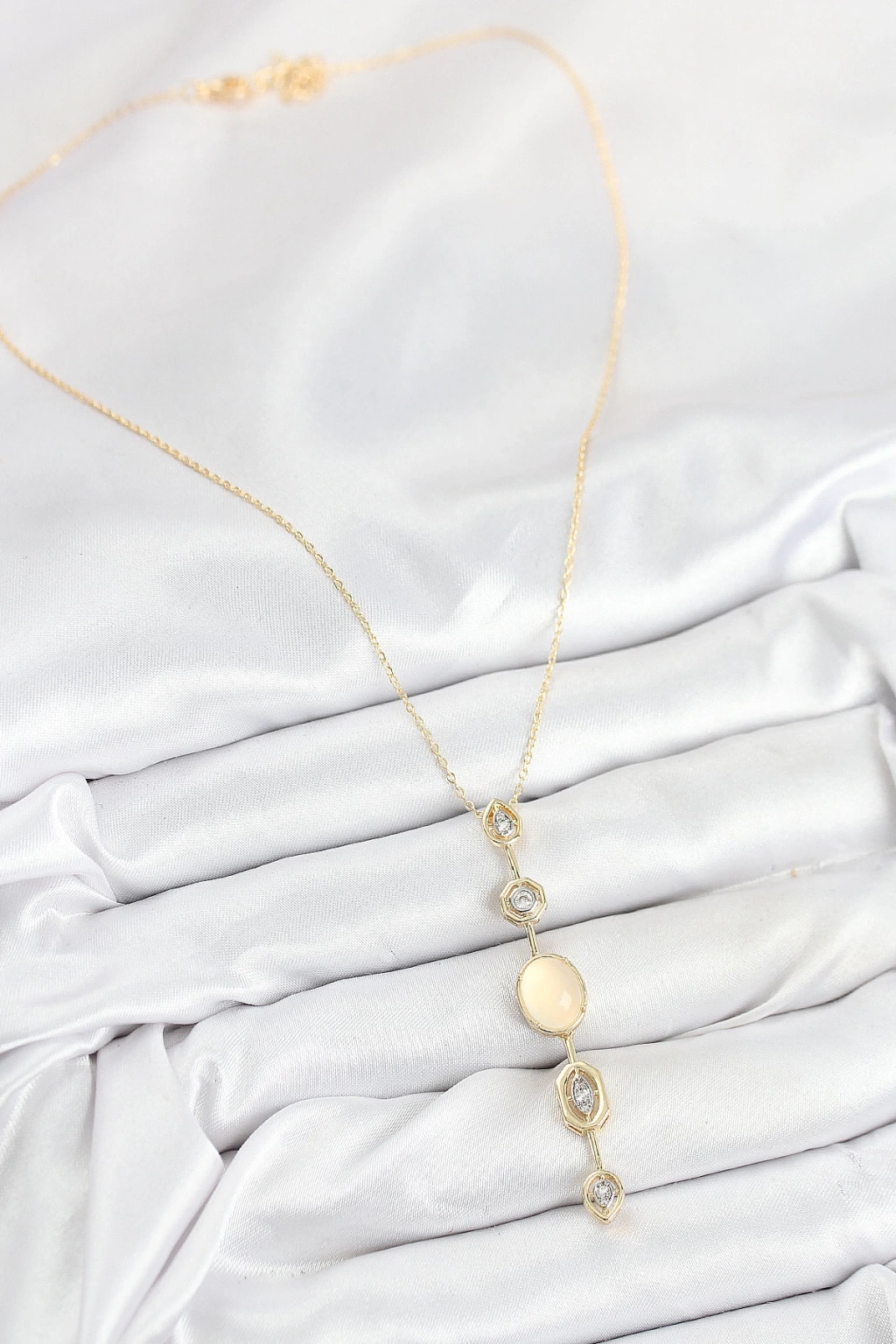 Pirinç Zincir Sarı Gold Renk Zirkon Taşlı Y Kolye - TJ-BKO10555