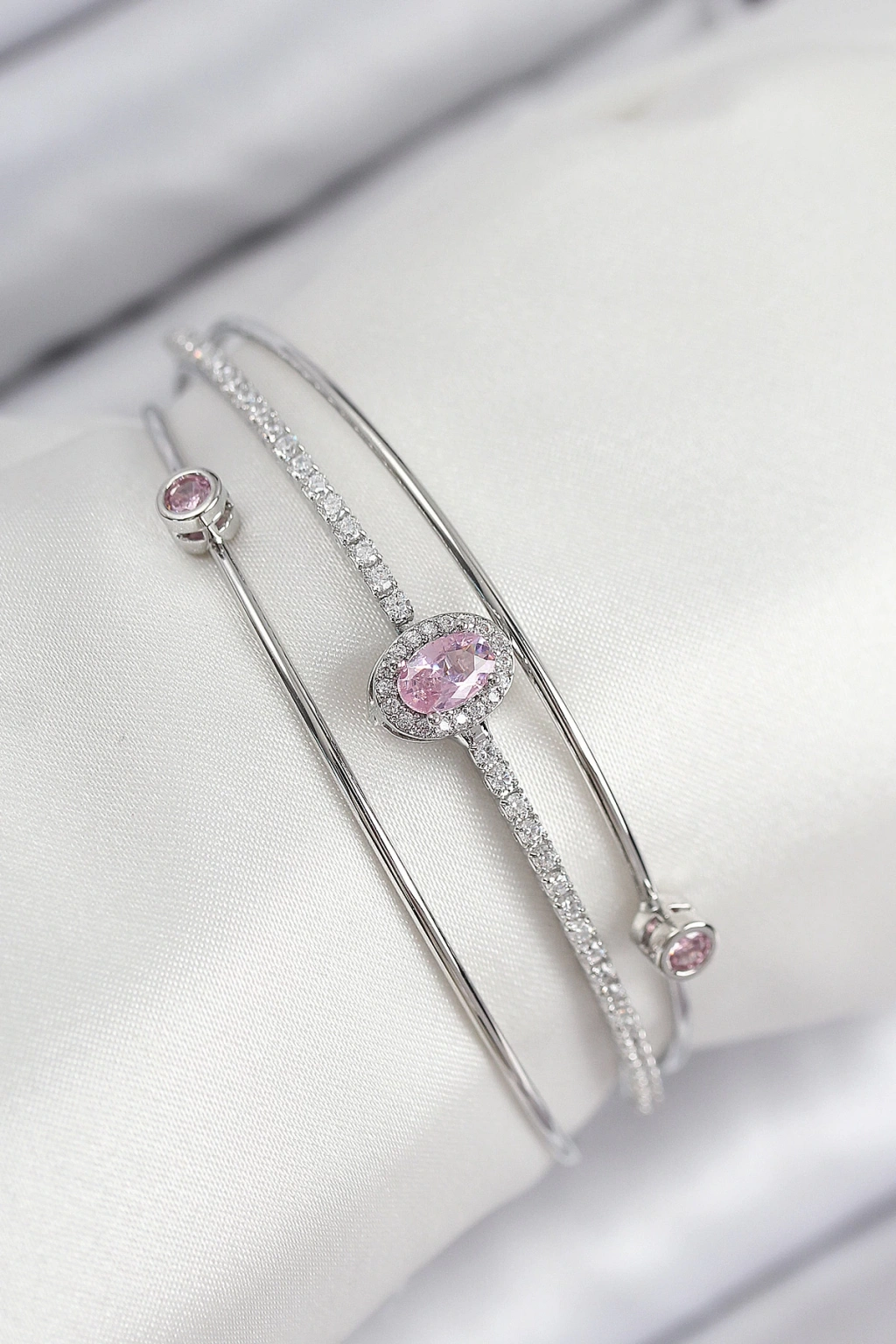 Pirinç Zirkon Taşlı Baget Model Gümüş Renk Kadın Bileklik - TJ-BB7864
