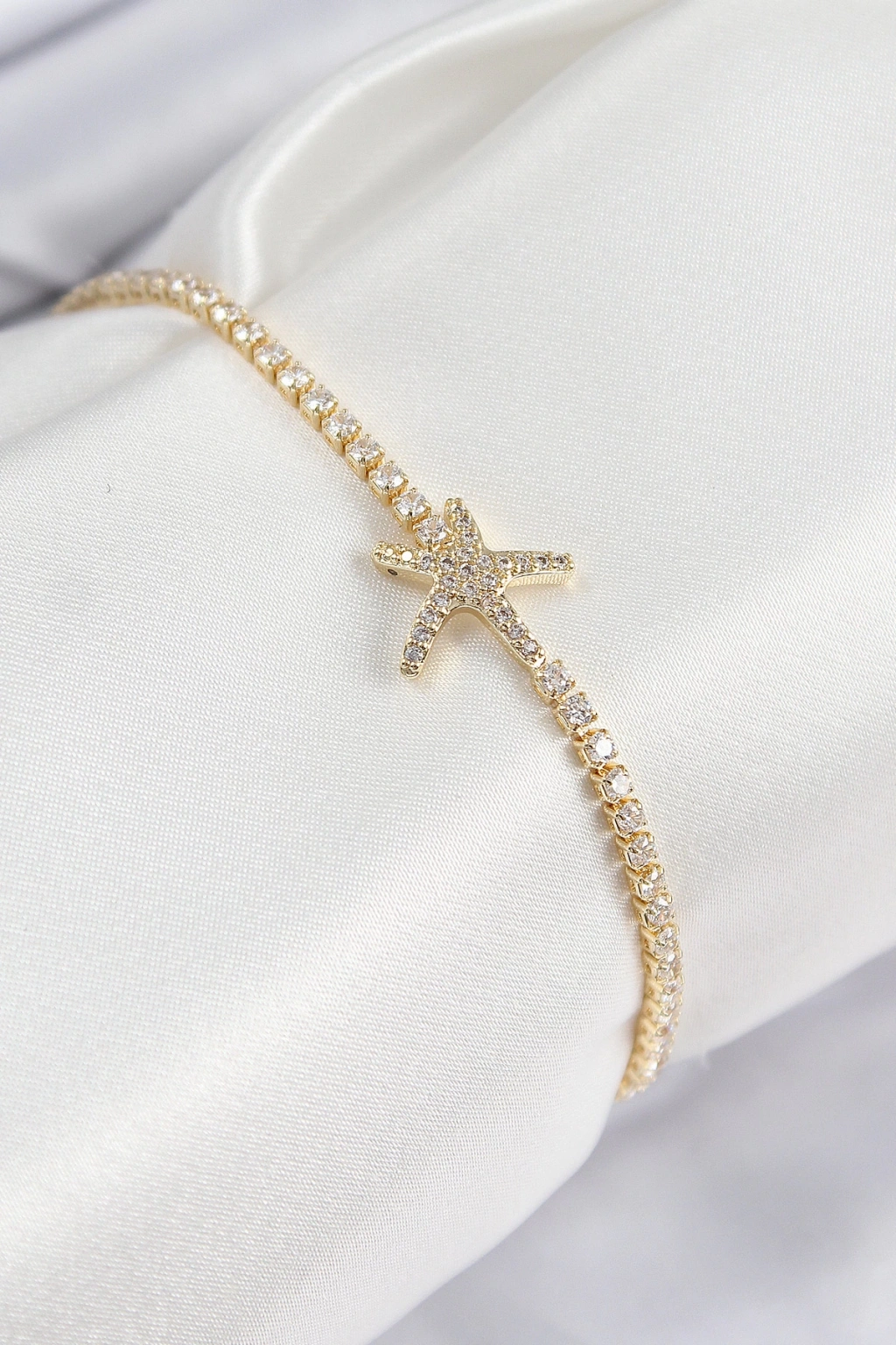Pirinç Zirkon Taşlı Deniz Yıldızı Model Gold Renk Kadın Bileklik - TJ-BB7695