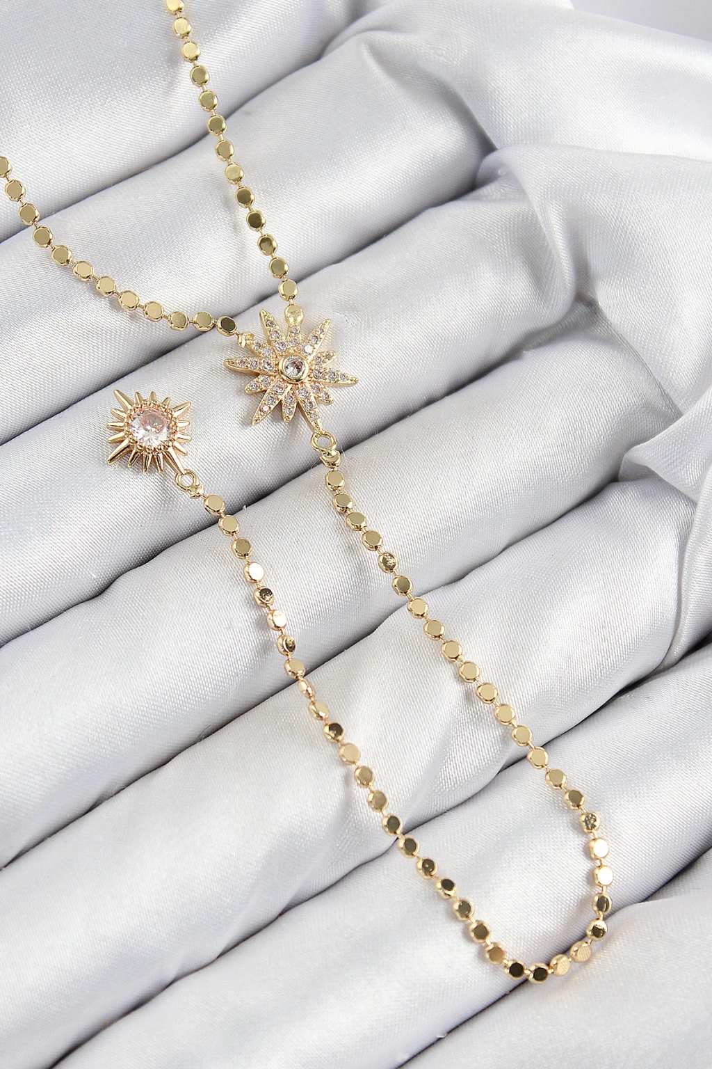 Pirinç Zirkon Taşlı Ezme Zincirli Kutup Yıldızı Model Gold Renk Y Kolye - TJ-BKO10469