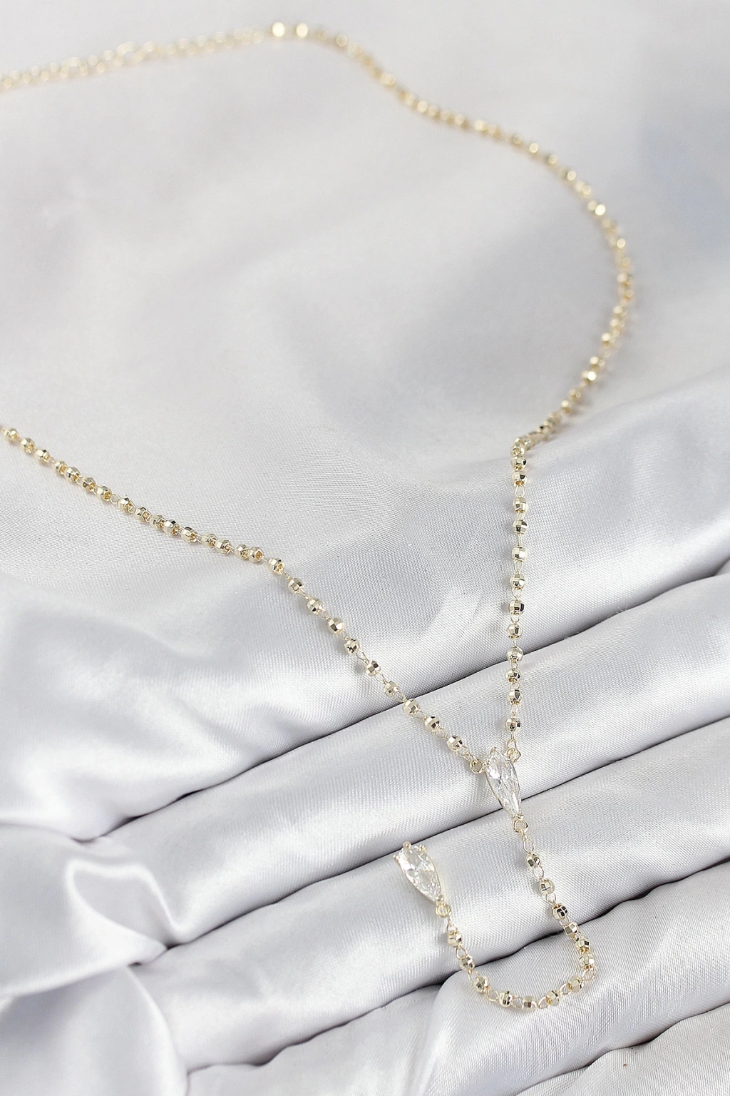 Pirinç Zirkon Taşlı Gold Renk Kadın Y Kolye - TJ-BKO10497