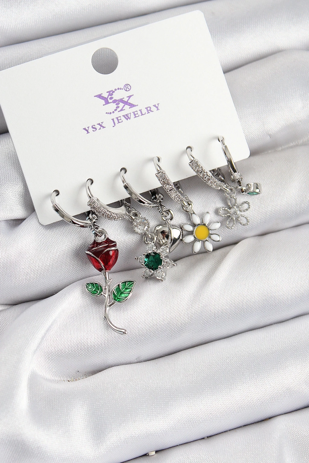 Pirinç Zİrkon Taşlı Gül Ve Papatya Model Gümüş Renk 3'lü Çift Kadın Küpe - TJ-BKP10956