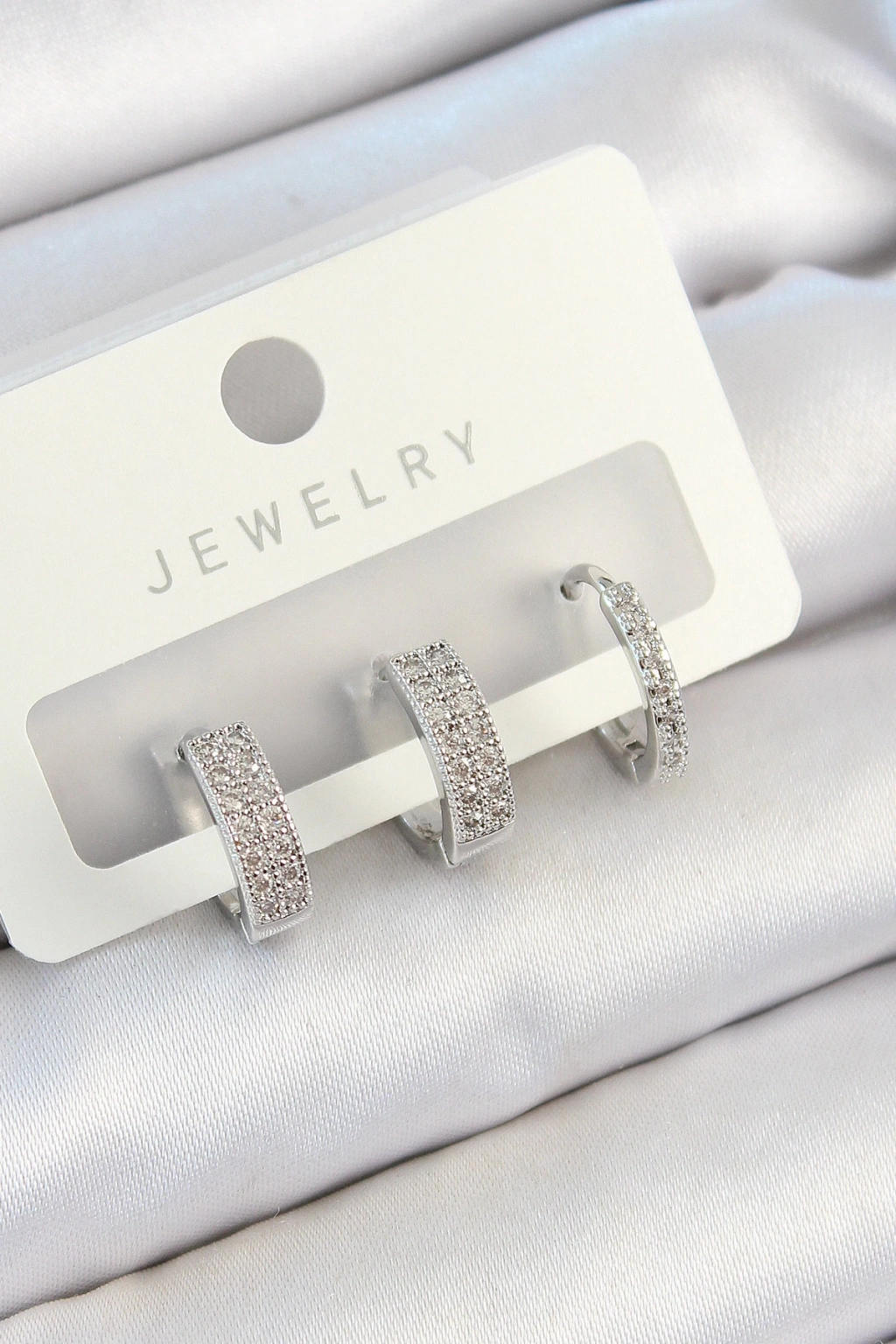 Pirinç Zirkon Taşlı Halka Model Gümüş Renk 3'lü Çift Kadın Küpe Set - TJ-BKP10810