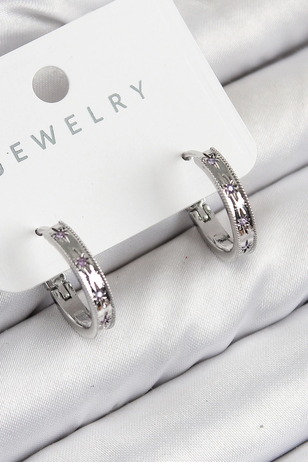 Pirinç Zirkon Taşlı Halka Model Gümüş Renk Kadın Küpe - TJ-BKP11071
