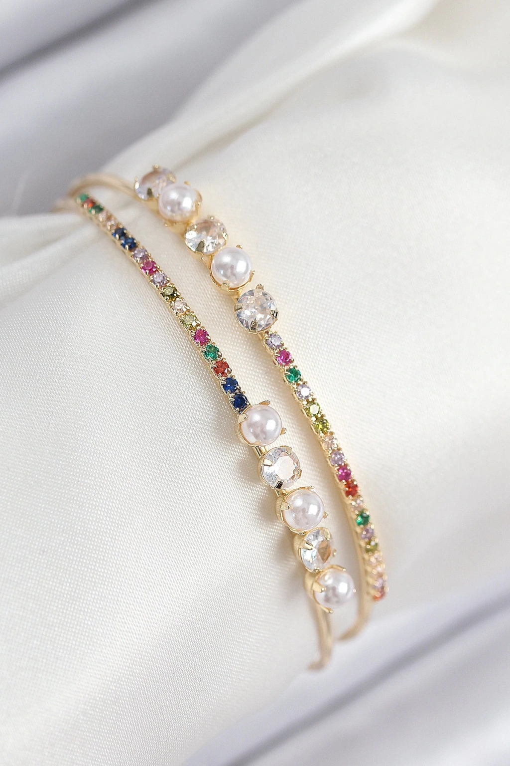 Pirinç Zirkon Taşlı İnci Model Gold Renk Kadın Bileklik - TJ-BB7875