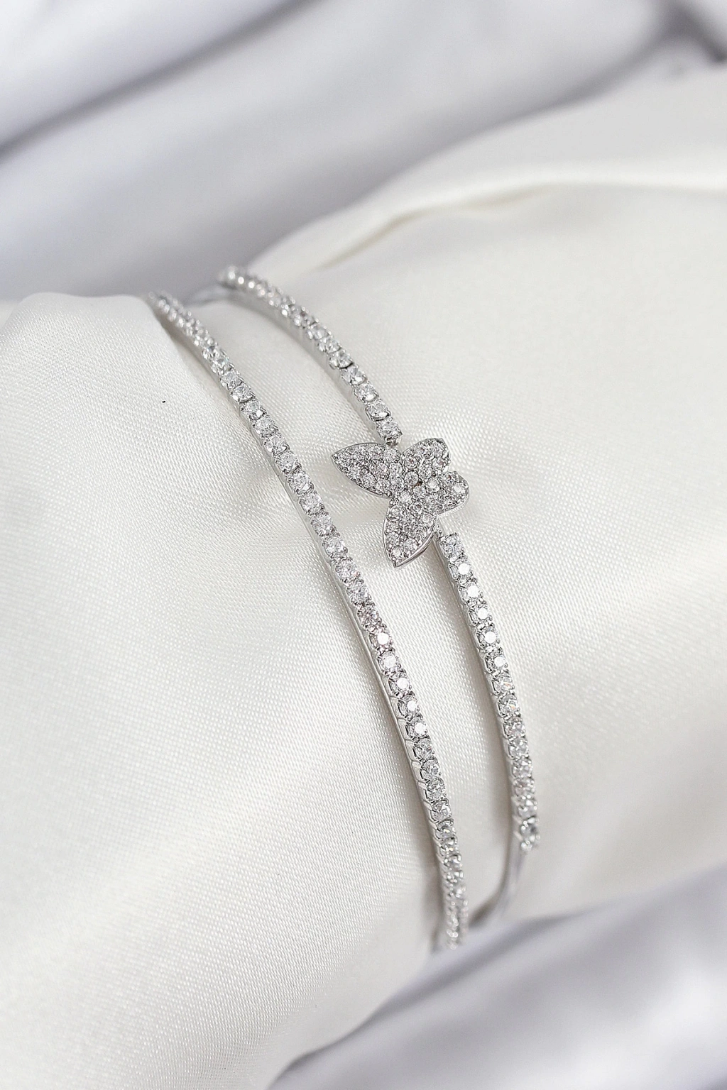 Pirinç Zirkon Taşlı Kelebek Model Gümüş Renk Kadın Bileklik - TJ-BB7892