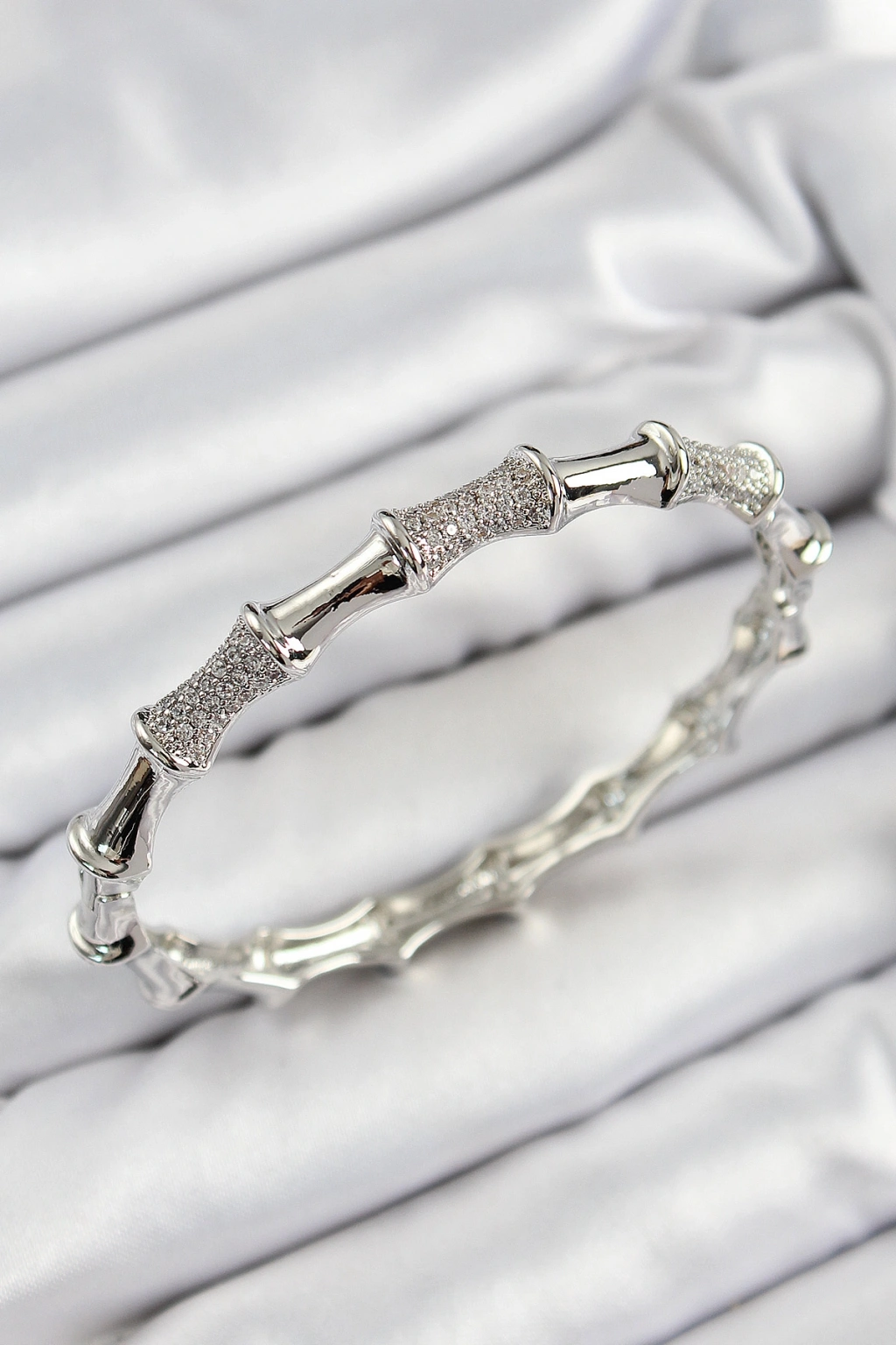 Pirinç Zirkon Taşlı Kemik Model Gümüş Renk Vip Kadın Bileklik - TJ-BB7343