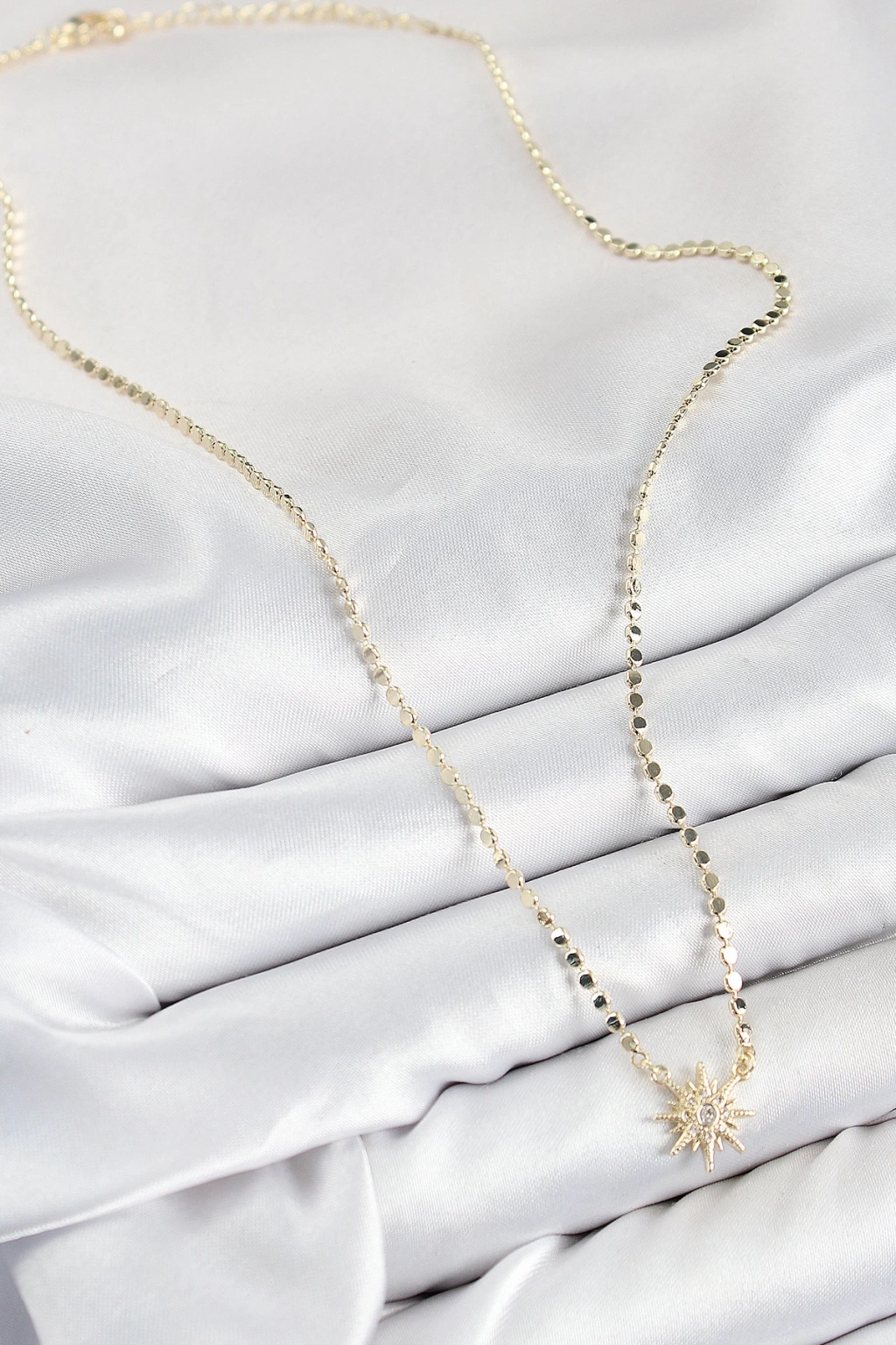 Pirinç Zirkon Taşlı Kutup Yıldızı Model Ezme Zincir Gold Renk Kadın Kolye - TJ-BKO10390