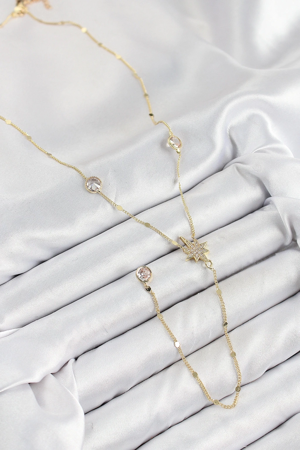 Pirinç Zirkon Taşlı Kutup Yıldızı Model Gold Renk Y Kolye - TJ-BKO10452