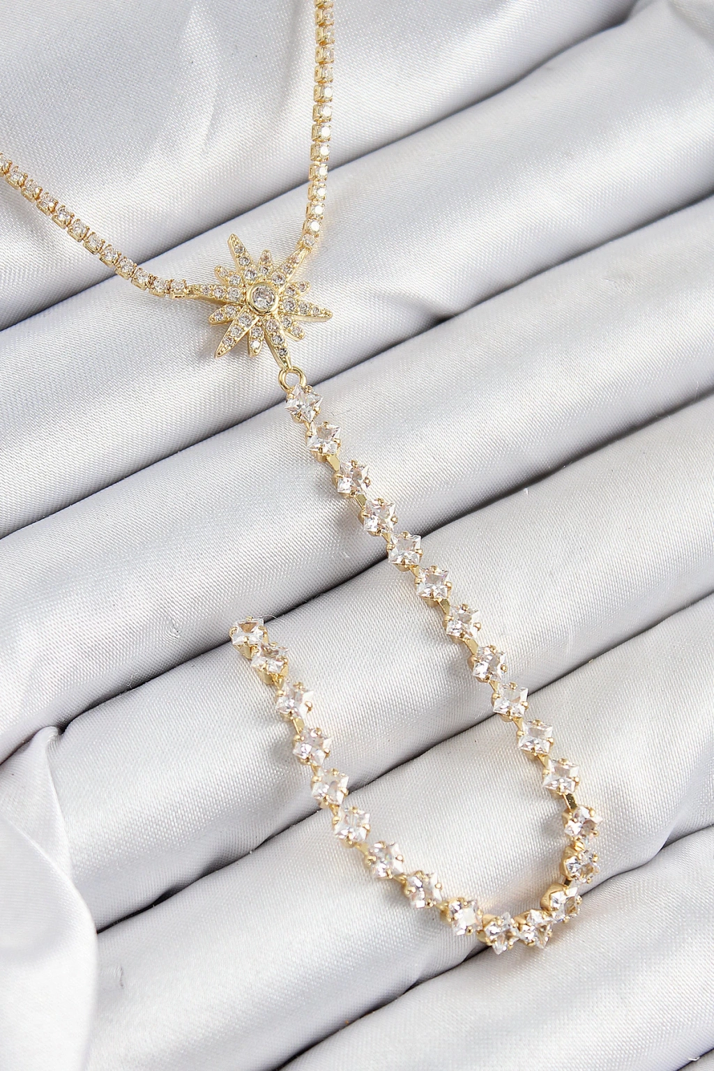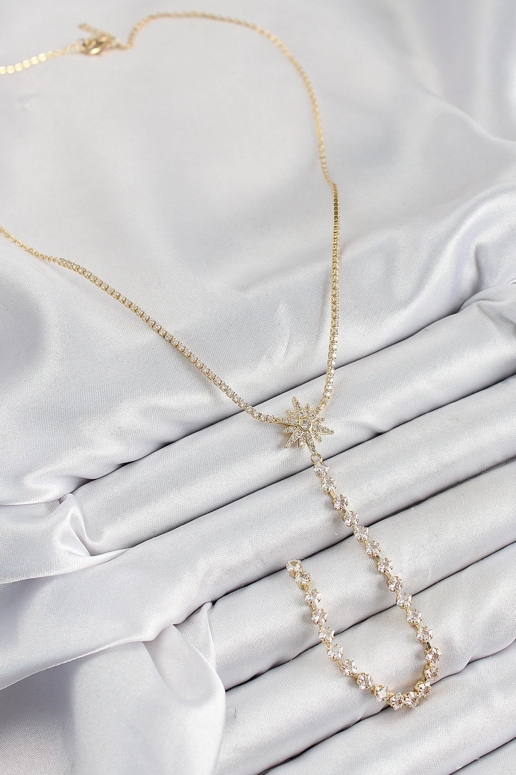 Pirinç Zirkon Taşlı Kutup Yıldızı Model Gümüş Renk Y Kolye - TJ-BKO10448