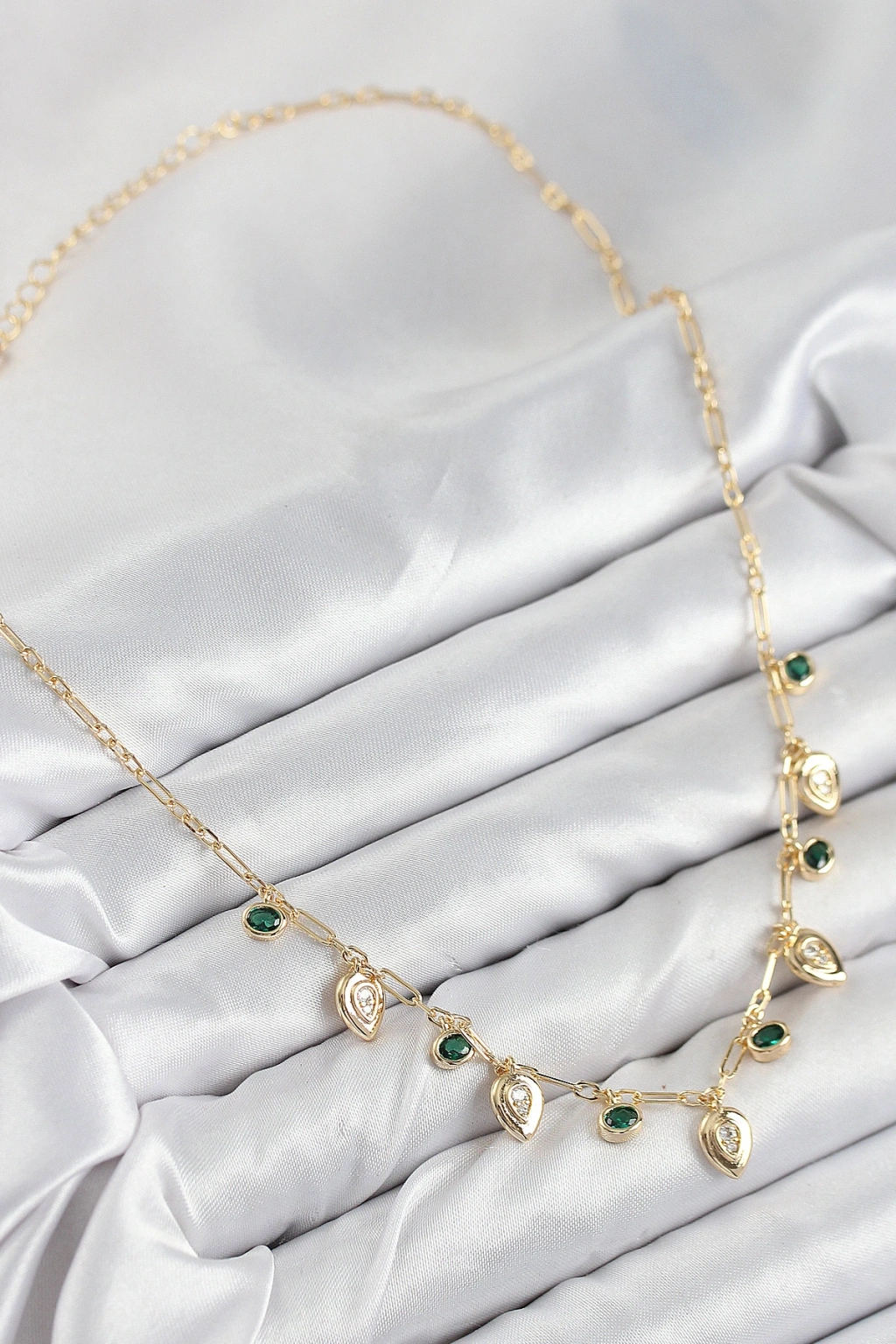 Pirinç Zirkon Taşlı Sallantılı Damla Model Gold Renk Kadın Kolye - TJ-BKO10493