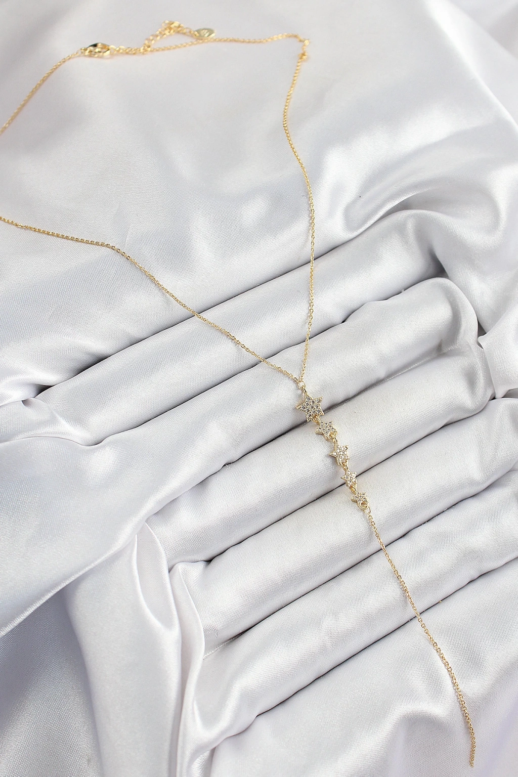 Pirinç Zirkon Taşlı Sıralı Yıldız Figürlü Y Model Gold Renk Kadın Kolye - TJ-BKO10314