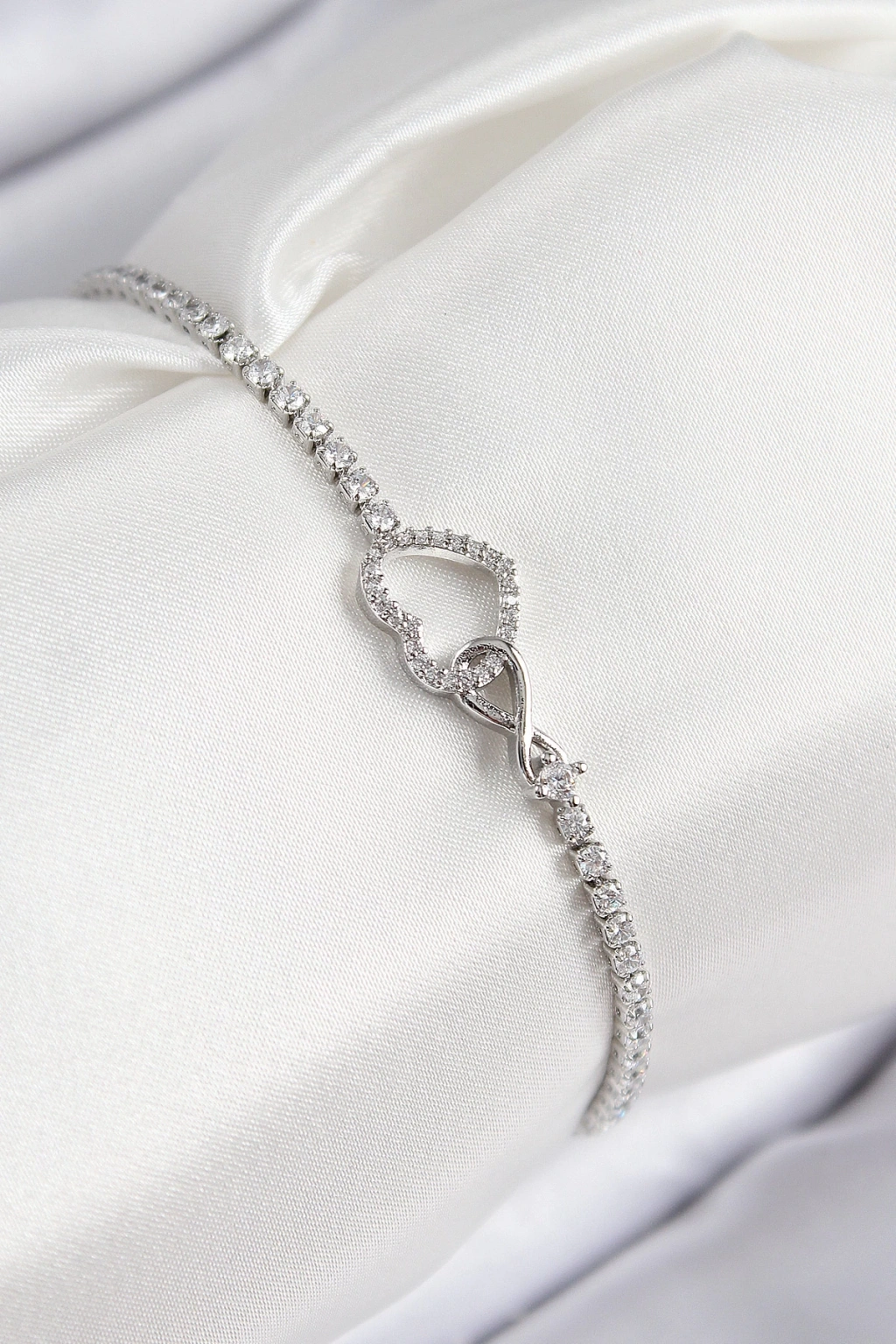 Pirinç Zirkon Taşlı Sonsuzluk Kalp Model Gümüş Renk Kadın Bileklik - TJ-BB7692