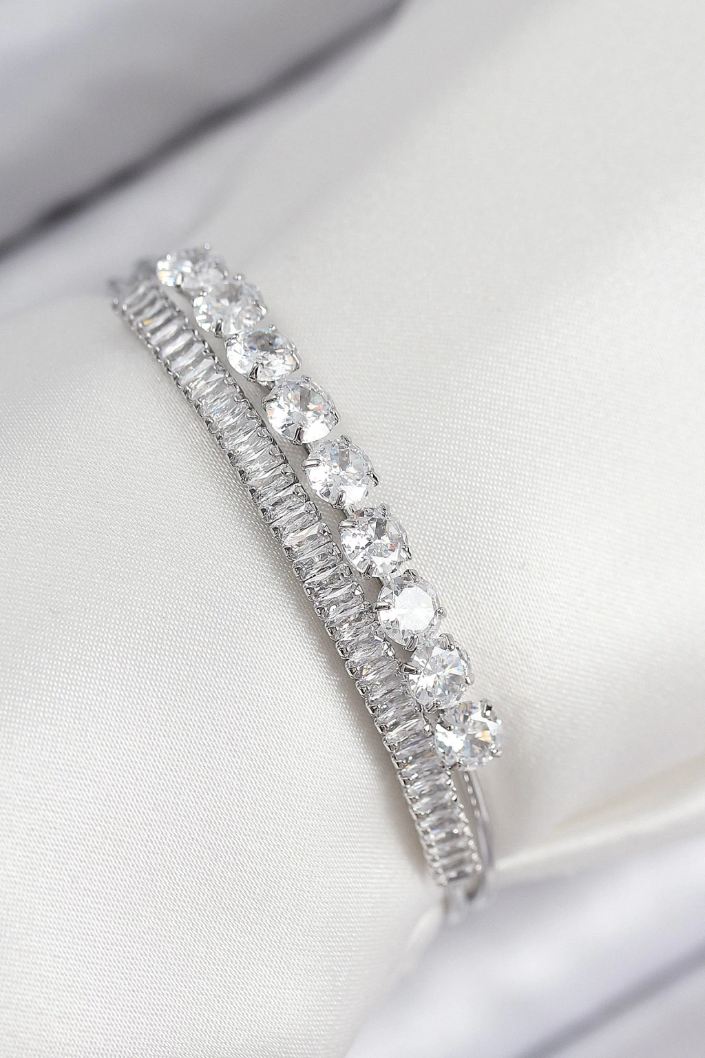 Pirinç Zirkon Taşlı Su Yolu Model Gümüş Renk Kadın Bileklik - TJ-BB7858