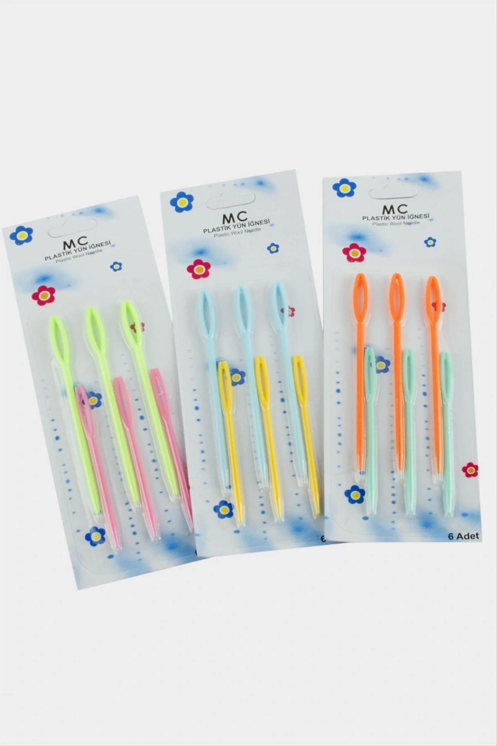 Plastik Yün İğnesi; Ürün malzemesi plastiktir. Ürün 1 kartta 6 adettir. Boyu 7-9 cmdir. Ürün renkleri asortilidir. Siparişlerinizde karışık olarak gönderilecektir.