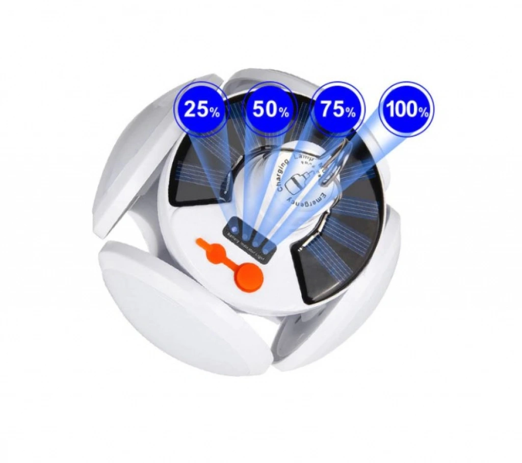 Solar Güneş Enerjisi Ve Usb Ile Şarj Olma Özelliklerine Sahip 5 Kanatlı Ve 5 Farklı Işık Modunda Çalışan Pratik Taşınabilir Bir Lambadır.