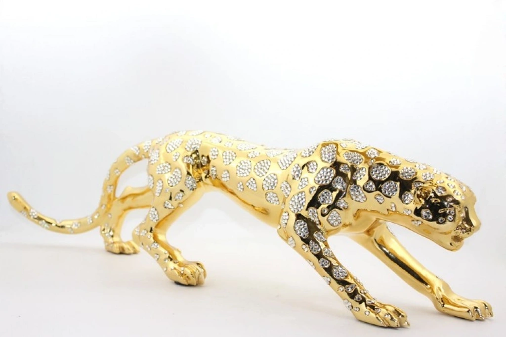 POLYESTER KAPLAN FİGÜRÜ MODEL 1Ürün ÖzellikleriPolyester kaplan figürü, güçlü ve zarif tasarımıyla dikkat çeken lüks bir dekoratif objedir. Parlak altın kaplama efekti ve detaylı işçiliği sayesinde bulunduğu ortama prestijli bir hava katar. Figür, dayanıklı polyester malzemeden üretilmiş olup, uzun ömürlü kullanım sunar. Üzerindeki taş detayları ve işlenmiş desenleriyle göz alıcı bir tasarıma sahiptir. Ev, ofis, otel veya lüks mekanların dekorasyonunda şık bir aksesuar olarak kullanılabilir. Gücü ve asaleti simgeleyen bu heykel, modern ve klasik dekorasyon stilleriyle mükemmel bir uyum sağlar. Ürün 75 cm boyutundadır.Paket İçeriği1 adet Polyester Kaplan Figürü Model 1