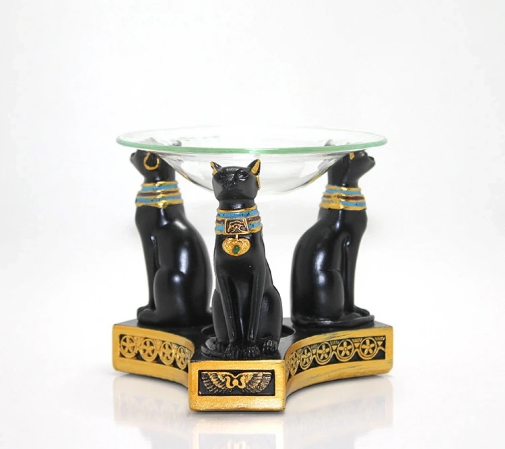 POLYESTER MISIR KEDİSİ BUHURDANLIKÜrün ÖzellikleriPolyester Mısır Kedisi Buhurdanlık, Antik Mısır’ın sembolik kedi figürlerini modern dekorasyonla buluşturan şık bir aromaterapi ürünüdür. 11x12 cm boyutundaki ideal ölçüsü sayesinde hem ev hem de iş yeri ortamlarında kolayca kullanılabilir. Üç adet detaylı Mısır kedisi figürünün taşıdığı cam hazne, ürüne hem estetik hem de mistik bir görünüm kazandırır. 1.derece kaliteli polyesterden üretilmiş olması sayesinde uzun ömürlü, sağlam ve ısıya dayanıklı bir kullanım sunar. Üst kısımda yer alan cam bölmeye uçucu yağ, esans yağı veya kokulu mum yağı eklenerek ortamda hoş ve kalıcı bir aroma yayılması sağlanır. Alt bölmeye yerleştirilen tealight mum ile birlikte kısa sürede verimli bir aromaterapi etkisi oluşturur. Etnik dekor sevenler, fark yaratan biblo tarzı buhurdanlık arayanlar ve yaşam alanına mistik bir dokunuş katmak isteyenler için ideal bir seçimdir.Paket İçeriği1 adet Polyester Mısır Kedisi Buhurdanlık